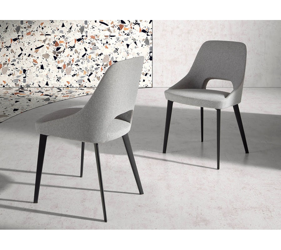Farebné spojenie sivých a čiernych odtieňov vytvorí moderný taliansky dizajn, ktorý je perfektne doplnený komfortným prevedením sedáku a opierky, vyplnených mäkkou polyuretánovou penou. Chrbtové operadlo jedálenskej stoličky sa nesie v jemne zaoblenom obopínajúcom tvare, čím zaručí pevnosť a stabilitu.