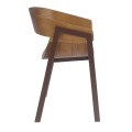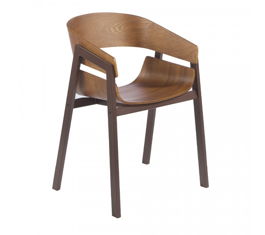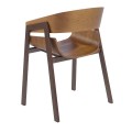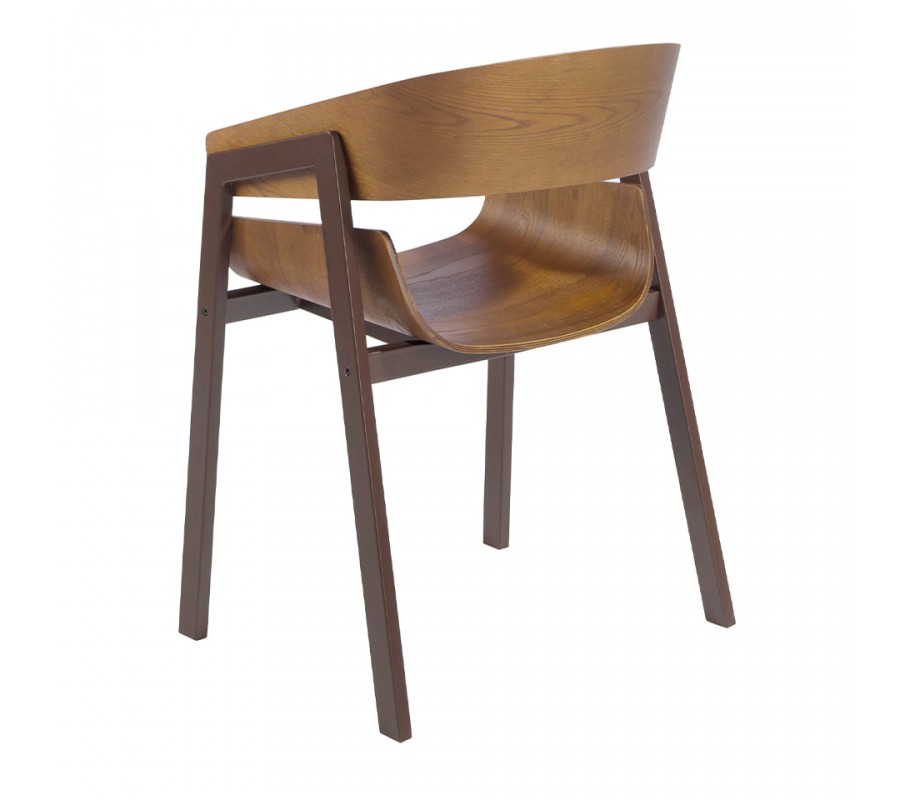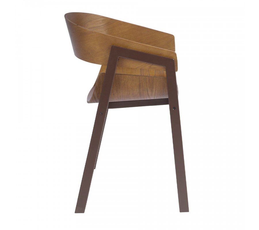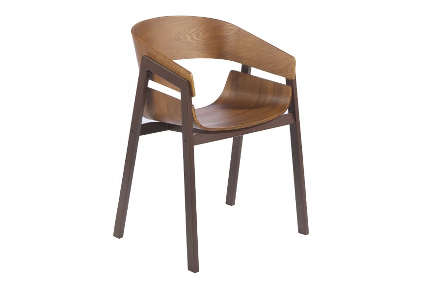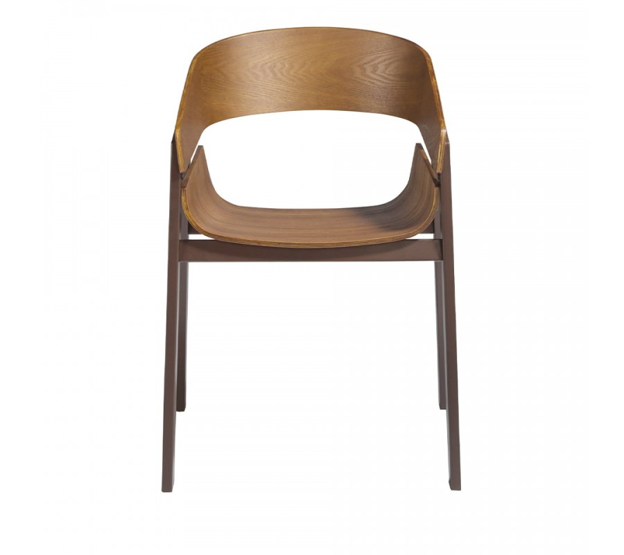 Prevedenie z hnedého dreva s nádychom tepla je doplnené pevnou konštrukciou a nožičkami z nehrdzavejúcej ocele v matnej hnedej farbe, ktoré podčiarknu moderný nadčasový vzhľad stoličky.