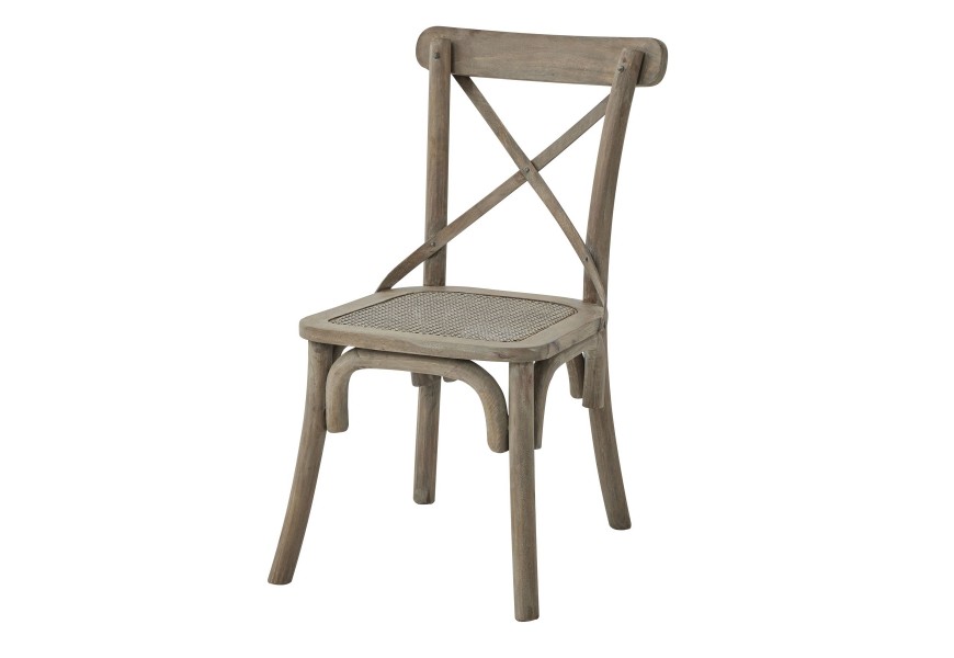 Vidiecka jedálenská stolička z kolekcie Fratemporain z masívneho dreva v sivo-hnedej farbe s viedenským výpletom 92cm