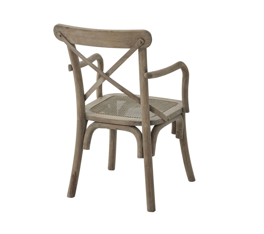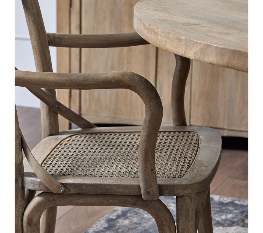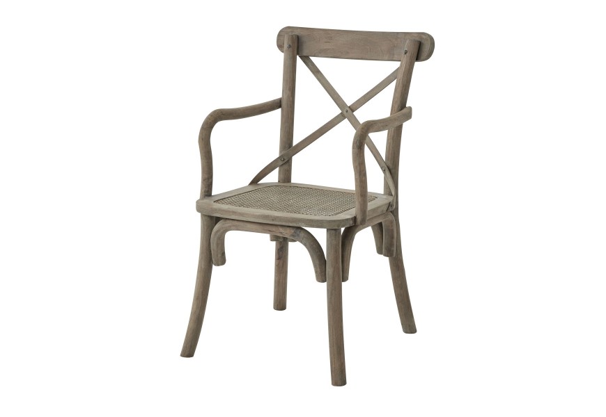 Jedálenská vidiecka stolička z kolekcie Fratemporain v hnedo-sivej farbe s opierkami a ratanovým výpletom 92cm