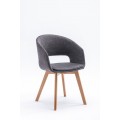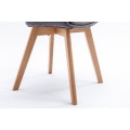 Škandinávska moderná jedálenská stolička Lena so sivým čalúnením a hnedými drevenými nohami 79cm