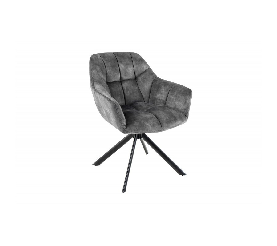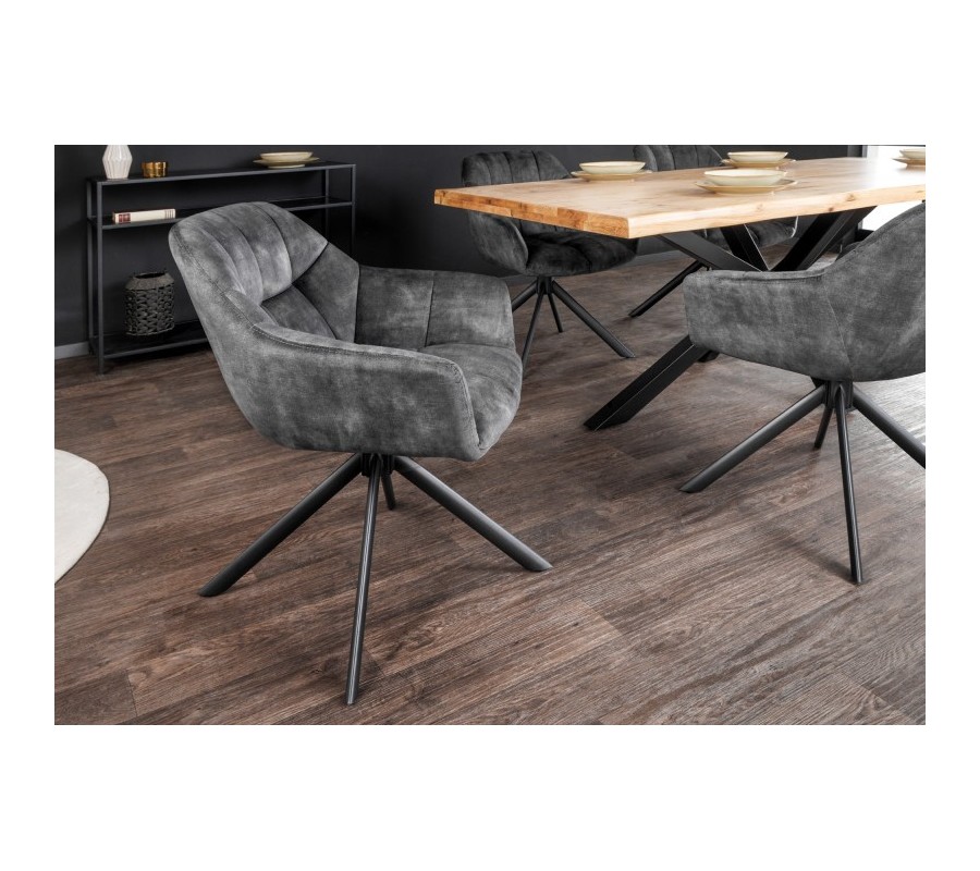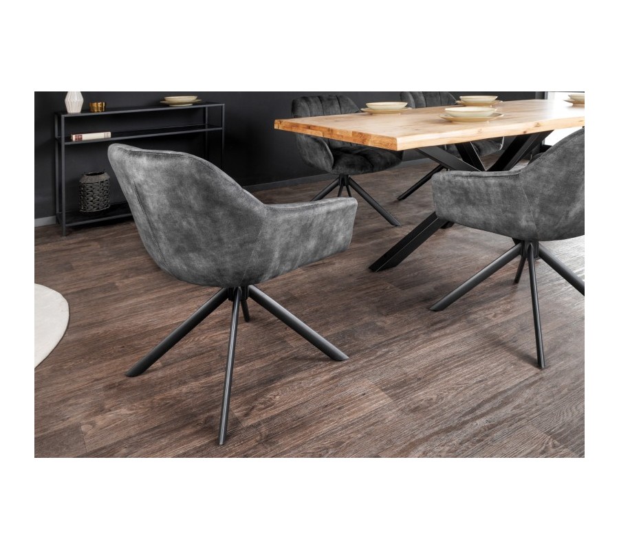 Dizajnová otočná jedálenská stolička Mariposa s tmavosivým zamatovým čalúnením a čiernymi nohami 83cm