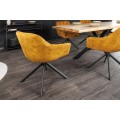 Dizajnová otočná jedálenská stolička Mariposa s horčicovožltým čalúnením a čiernymi nohami z kovu 83cm
