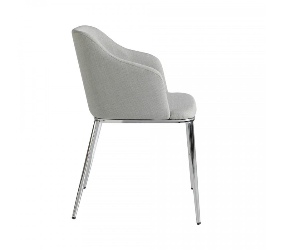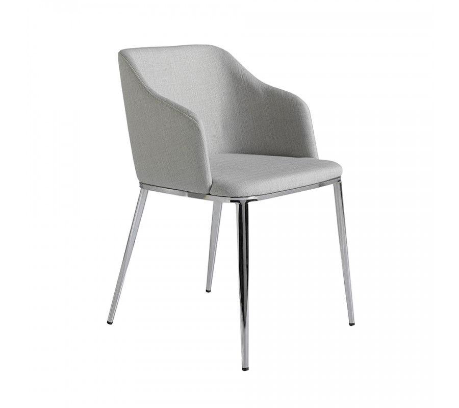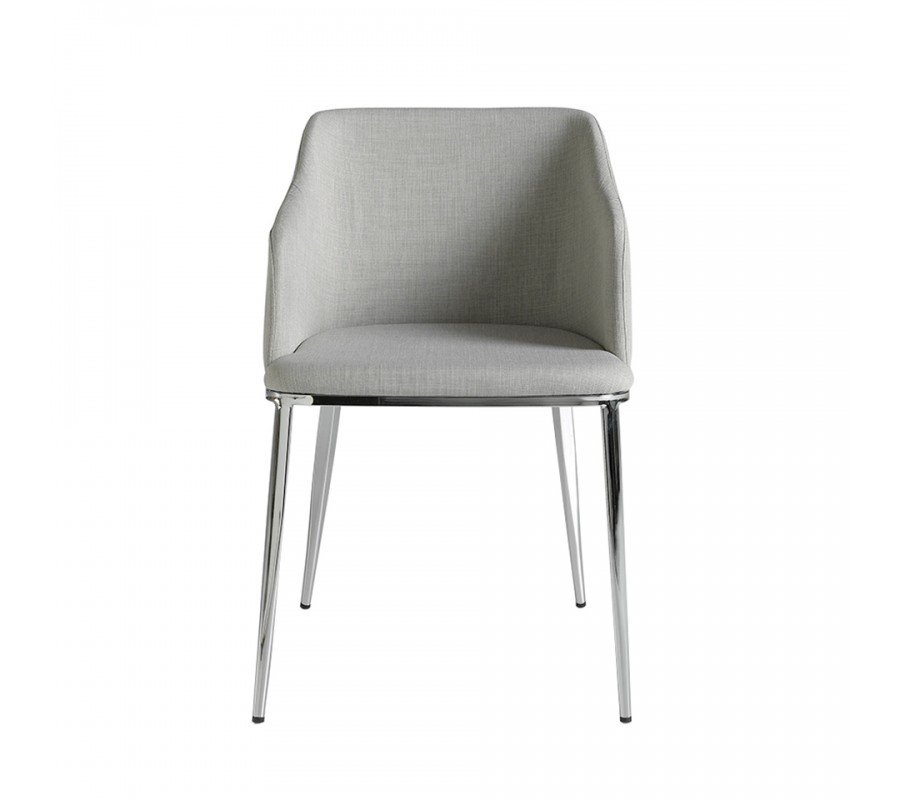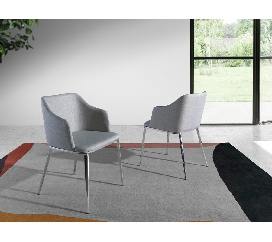 Taliansky dizajn jedálenskej stoličky Urbano prinesie kombinácia sivého textilného čalúnenia, pohodlná a obopínajúca chrbtová opierka s nádychom retro štýlu, a v neposlednom rade výrazné, pochrómované nožičky z nehrdzavejúcej ocele, ktoré prinesú do Vášho domova nádych avantgardného štýlu.