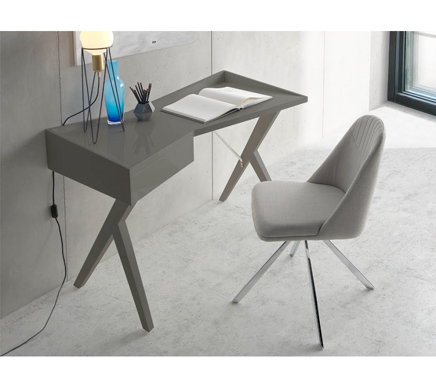 Taliansky dizajn jedálenskej stoličky je dosiahnutý textilným čalúnením v svetlosivej až sivej farbe, ktoré je obohatené o štýlové prešívanie vo vertikálnych líniách na vrchnej časti chrbtovej opierky. Chrbtová opierka ponúka minimalistický dizajn, ktorý avšak svojím funkčným, obopínajúcim prevedením zaručí pohodlie pri stolovaní. Dizajnovej stránke jedálenskej stoličky Urbano dominuje najmä jej jedinečné prevedenie oceľových nožičiek, ktoré sú obohatené o chrómový povrch, ktorý umocní sofistikovaný vzhľad s nádychom spomenutého avantgardného štýlu.