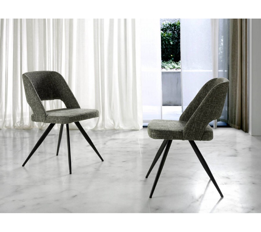 Štýlové čalúnenie jedálenskej stoličky je vyhotovené v sivom textilnom prevedení s bielymi dizajnovými detailmi, ktoré osviežia elegantný vzhľad stoličky. Stabilitu modernej stoličky Forma Moderna zaručia štyri epoxidové nožičky z ocele v čiernej farbe.
