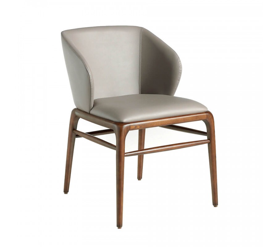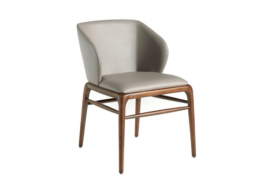 Sivé čalúnenie stoličky Forma Moderna je doplnené konštrukciou nožičiek z masívneho jaseňového dreva v orechovo hnedej farbe, ktoré nielen podčiarkne kvalitné vyhotovenie, ale taktiež dodá dotyk harmónie, elegancie a prírodného vzhľadu.