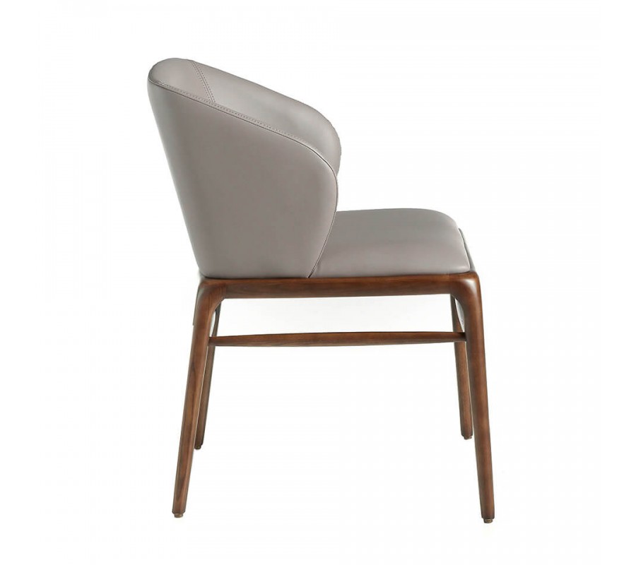 Moderná jedálenská stolička Forma Moderna je čalúnená koženkou v norkovej sivej farbe, ktorá sa svojím prevedením skvele hodí do moderných priestorov alebo aj do priestorov s retro nádychom. Jej široký sedák a obopínajúca chrbtová opierka sú vyplnené mäkkou polyuretánovou penou, čo zaručuje vysokú úroveň pohodlia aj pri dlhodobom sedení.