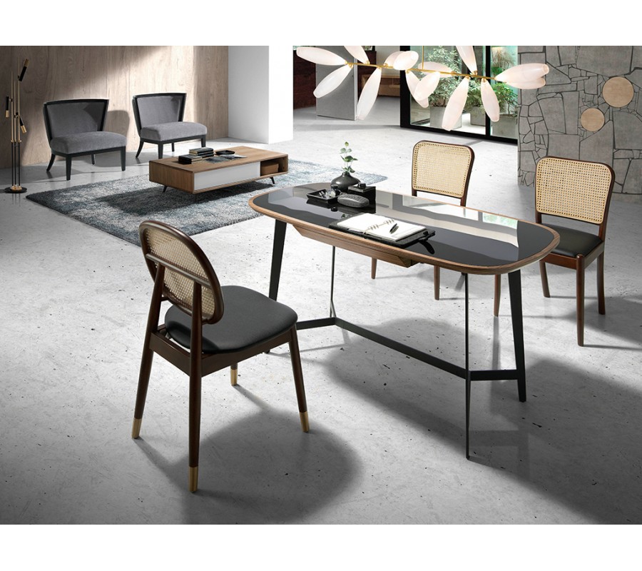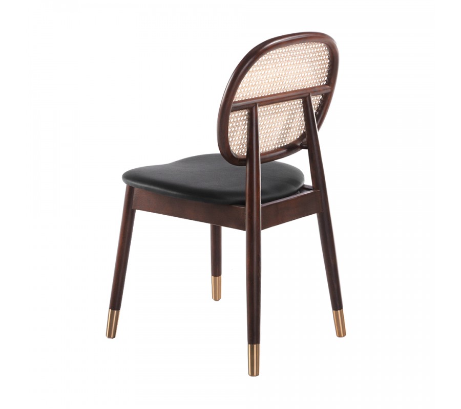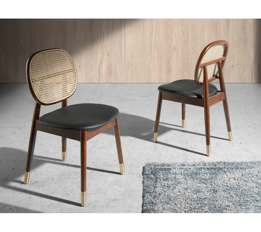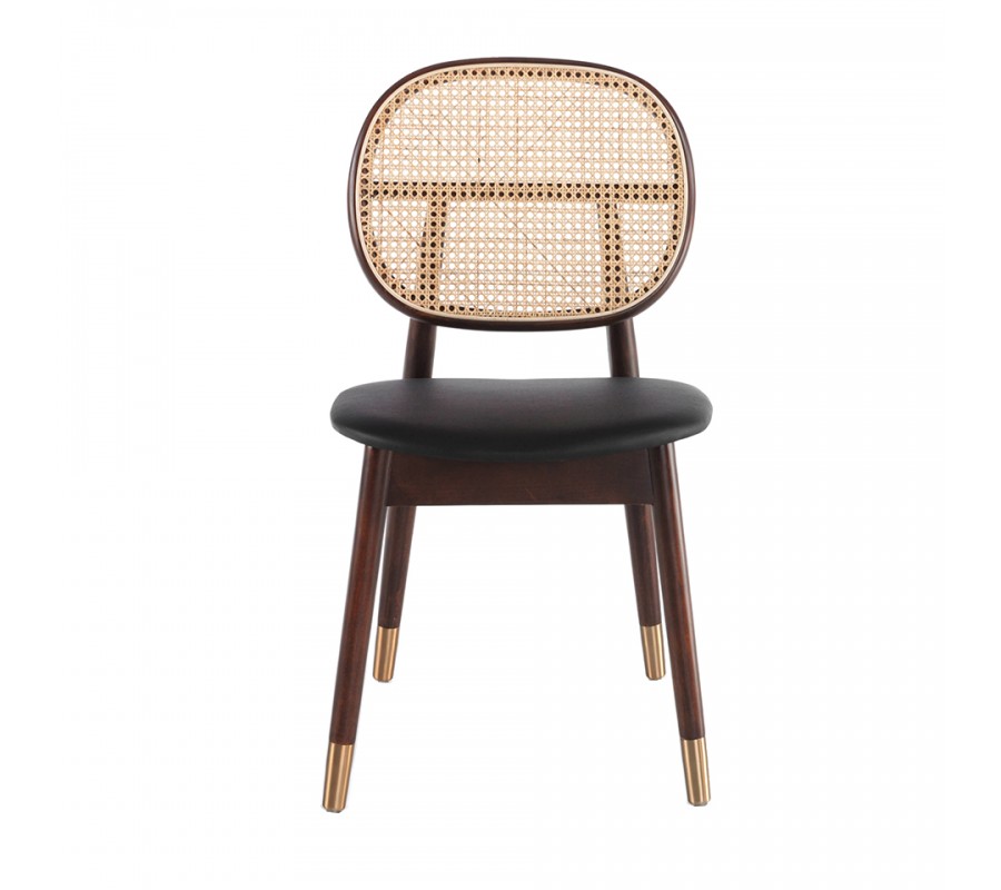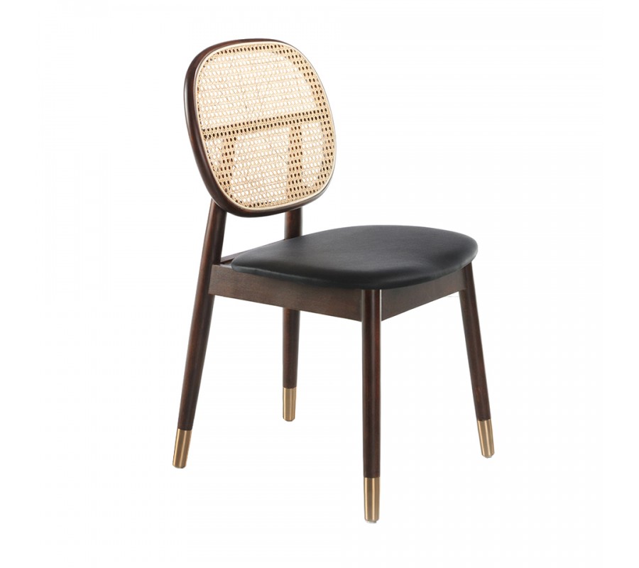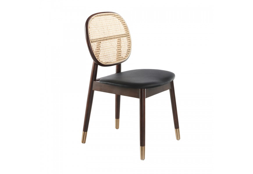 Moderná jedálenská stolička Forma Moderna bola navrhnutá s dôrazom na detaily, preto sú masívne nožičky doplnené o oceľové zakončenie v zlatej farbe, ktoré krásne doplní ratanový výplet , a taktiež umocní Retro vzhľad stoličky.