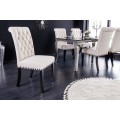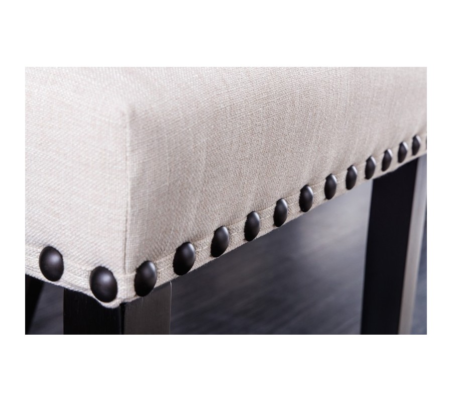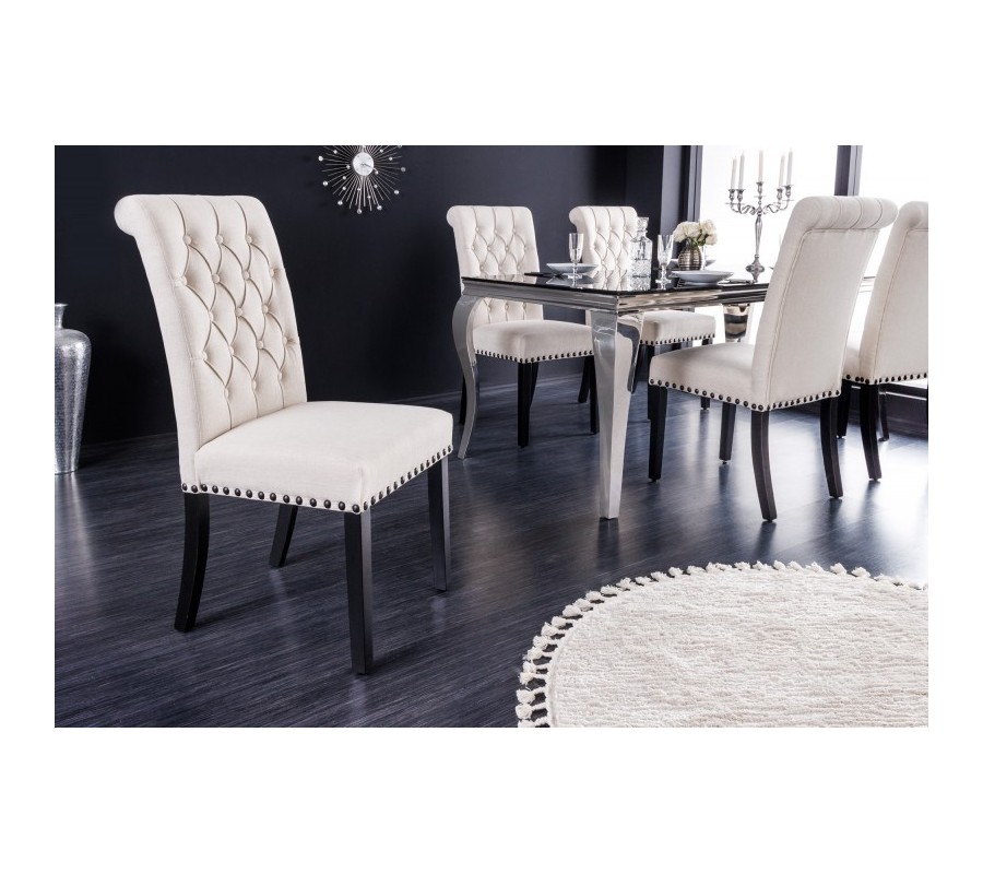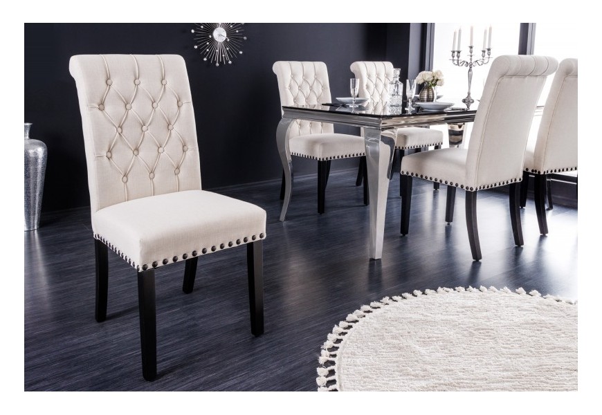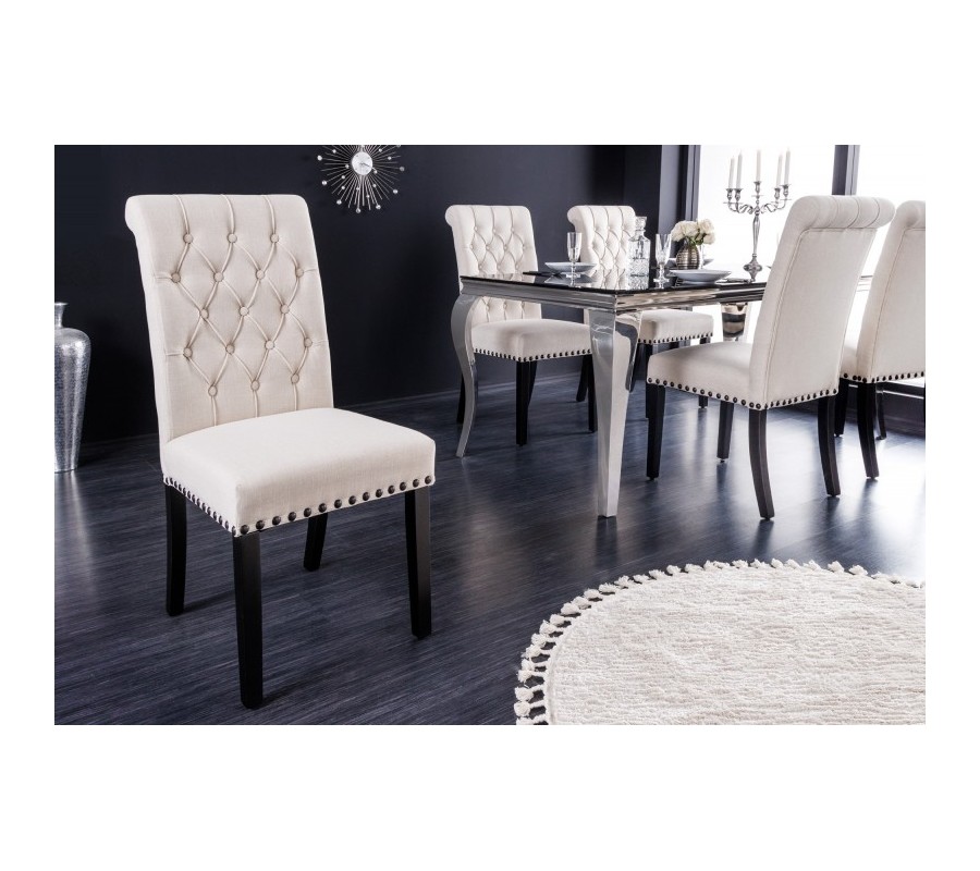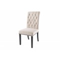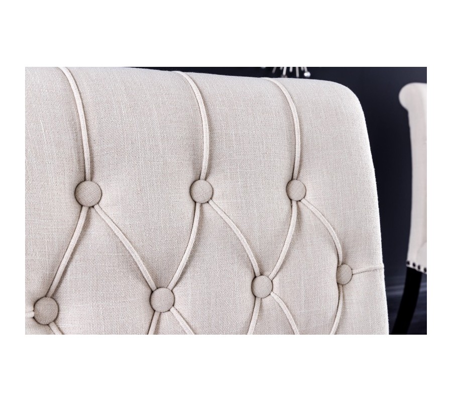 Sofistikované prevedenie stoličky Bertissa z vysokokvalitných materiálov poteší priaznivcov zámockého nábytku s elegantným nádychom. Konštrukcia je postavená na pevných nožičkách vyrobených z tvrdenej gumy s hnedým mahagónovým náterom s imitáciou dreva, a tak si môžete byť istý komfortom a stabilitou sedenia počas večere s priateľmi či rodinou. Pohodlné sedenie navyše garantuje aj čalúnenie zo štruktúrovanej tkaniny pripomínajúcej ľan v svetlej béžovej farbe so štýlovým bodovým prešívaním v štýle chesterfield. Jedálenská stolička Bertissa zaujme najmä zdobením kovovými nitmi s patinou po obvode sedacej časti. Vďaka farebnej kombinácii hnedej a béžovej farby si bude rozumieť so zemitými prírodnými odtieňmi zelenej, hnedej či slonovinovej farby, no rozhodne sa nestratí ani spolu s výraznejšími odtieňmi ako je purpurová, burgundy či noir modrá farba na závesoch, kobercoch či dekoráciách. Svoje miesto si nájde v luxusne ladených jedálňach či kuchyniach v kombinácii s masívnym klasickým či rustikálnym jedálenským stolom z dreveného masívu s prírodnou kresbou dreva. Stolička Bertissa disponuje praktickými protišmykovými chráničmi podlahy na všetkých štyroch nožičkách, ktoré sú výškovo nastaviteľné podľa vašich potrieb. Maximálna nosnosť konštrukcie je do 110kg.