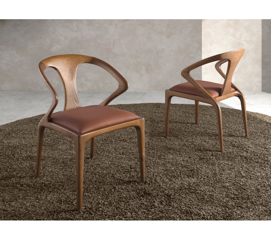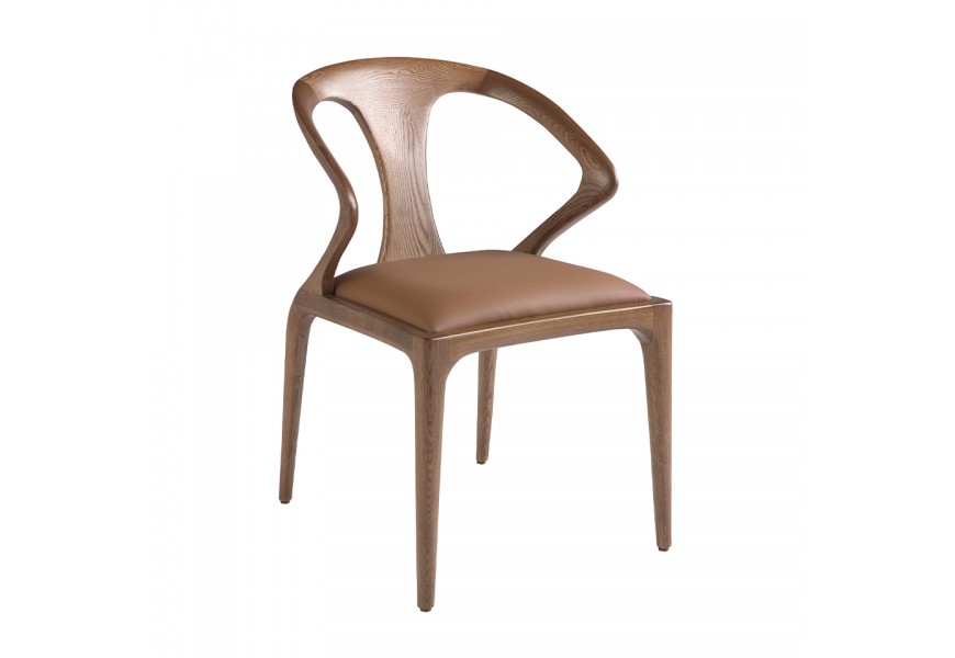 Luxusná moderná jedálenská stolička Vita Naturale v orechovej hnedej farbe dreva s koženým čalúnením 78 cm