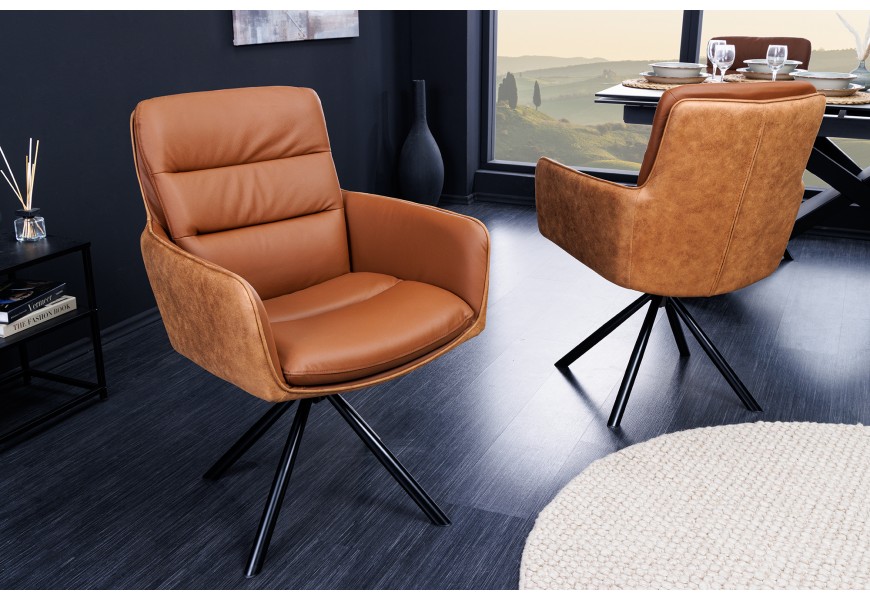 Moderná industriálna stolička Coiro s koženým čalúnením a kovovými nožičkami koňaková hnedá 90 cm