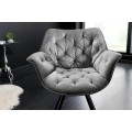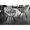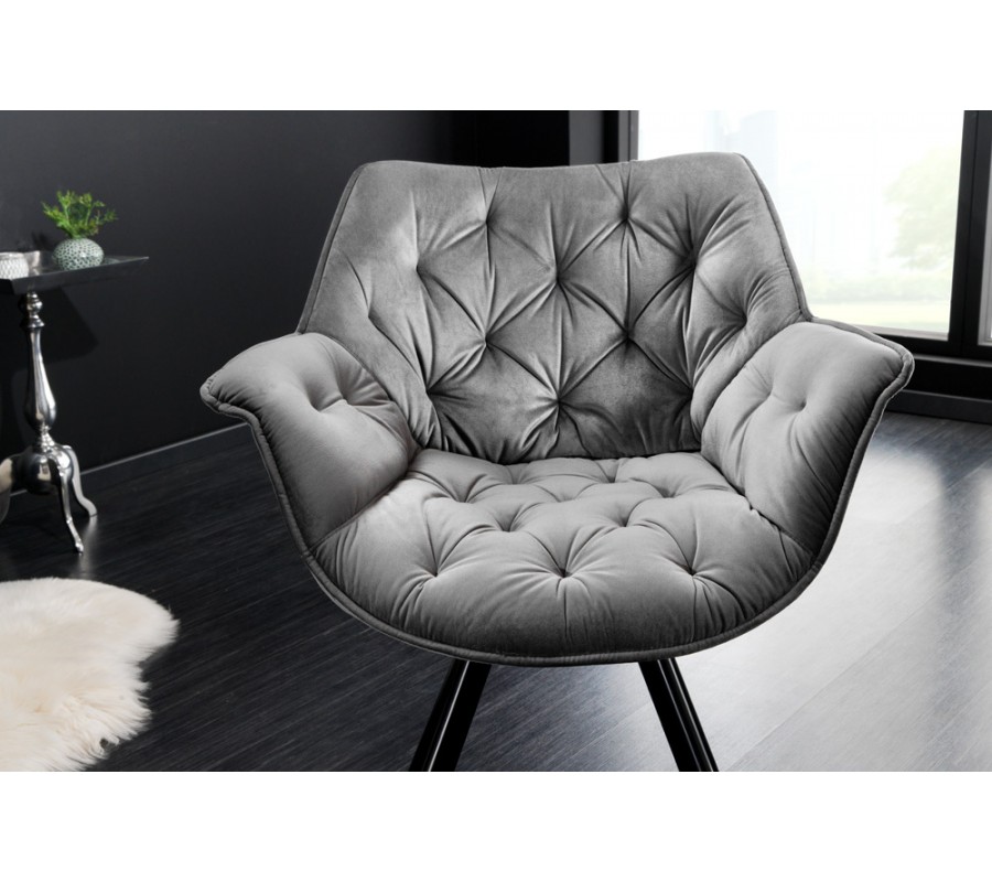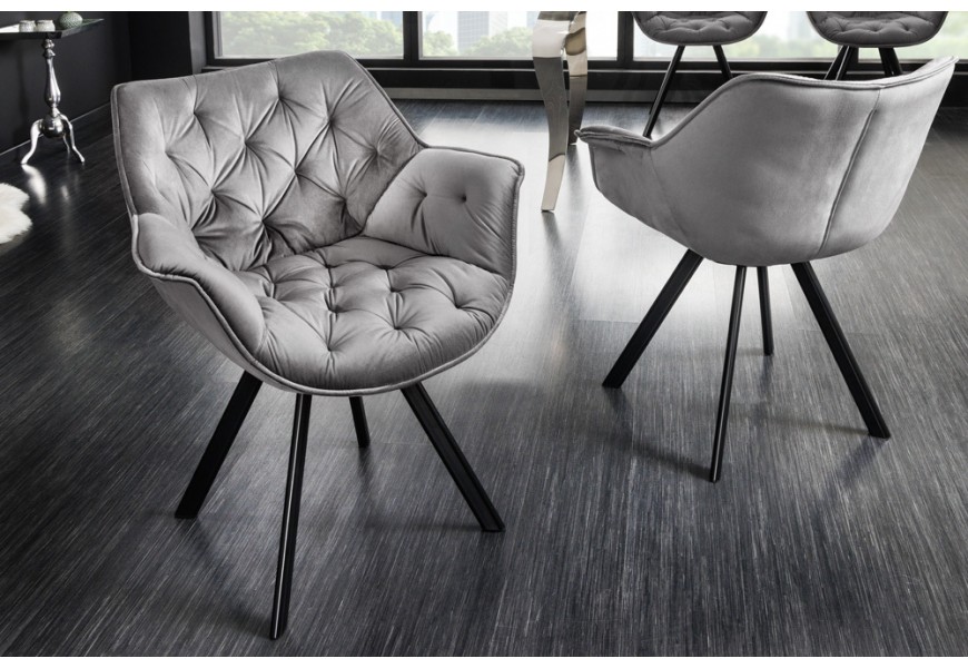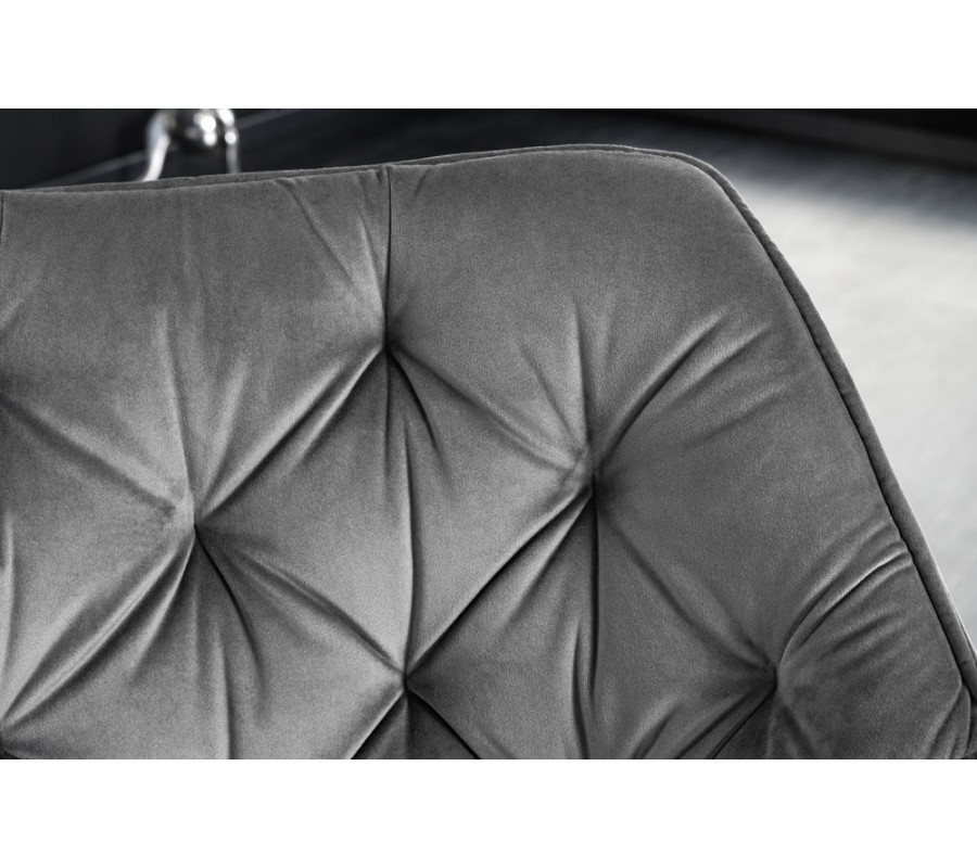 Dizajnová otočná čalúnená stolička Hetty so zamatovým poťahom s prešívaním v chesterfield štýle strieborná sivá 67 cm
