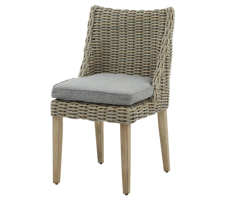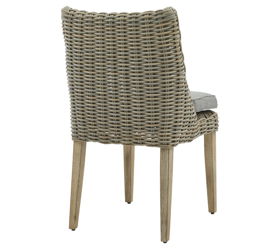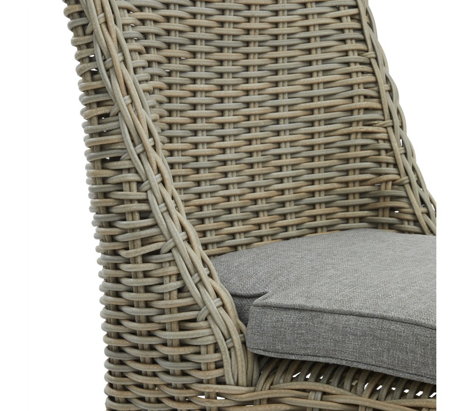 Rám stoličky je vyrobený z ľahkého, ale odolného hliníka s práškovým nástrekom, čo zabezpečuje ochranu proti hrdzi a korózii. Nohy z tvrdého akáciového dreva pridávajú stoličke ďalšiu vrstvu dlhotrvajúcej odolnosti a stability. Ratanový výplet poskytuje stoličke pružnosť a vytvára tak pohodlné sedenie.