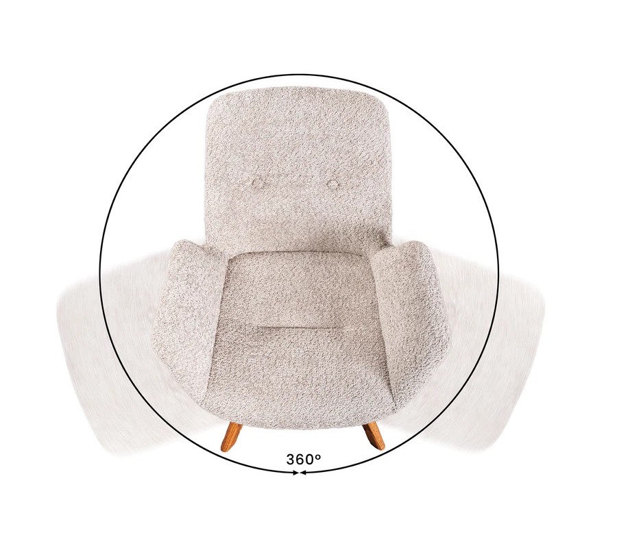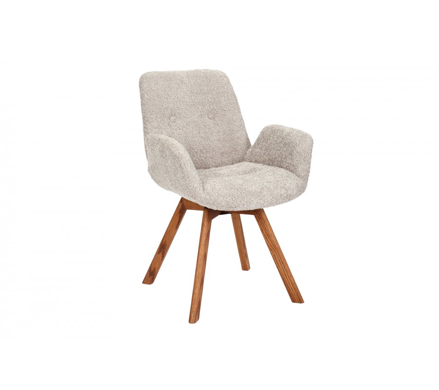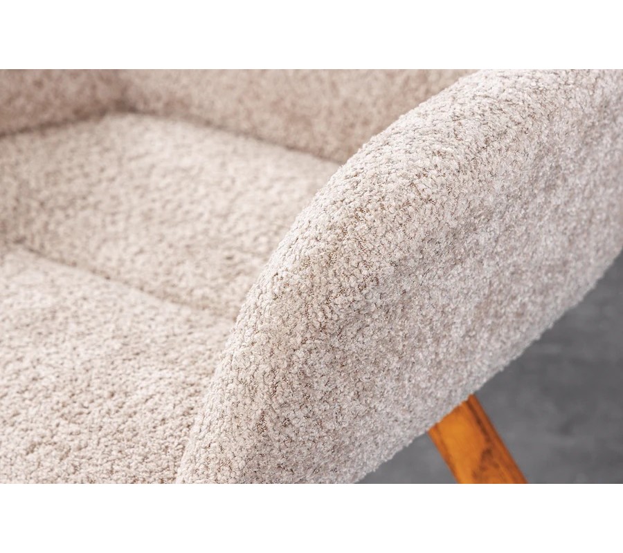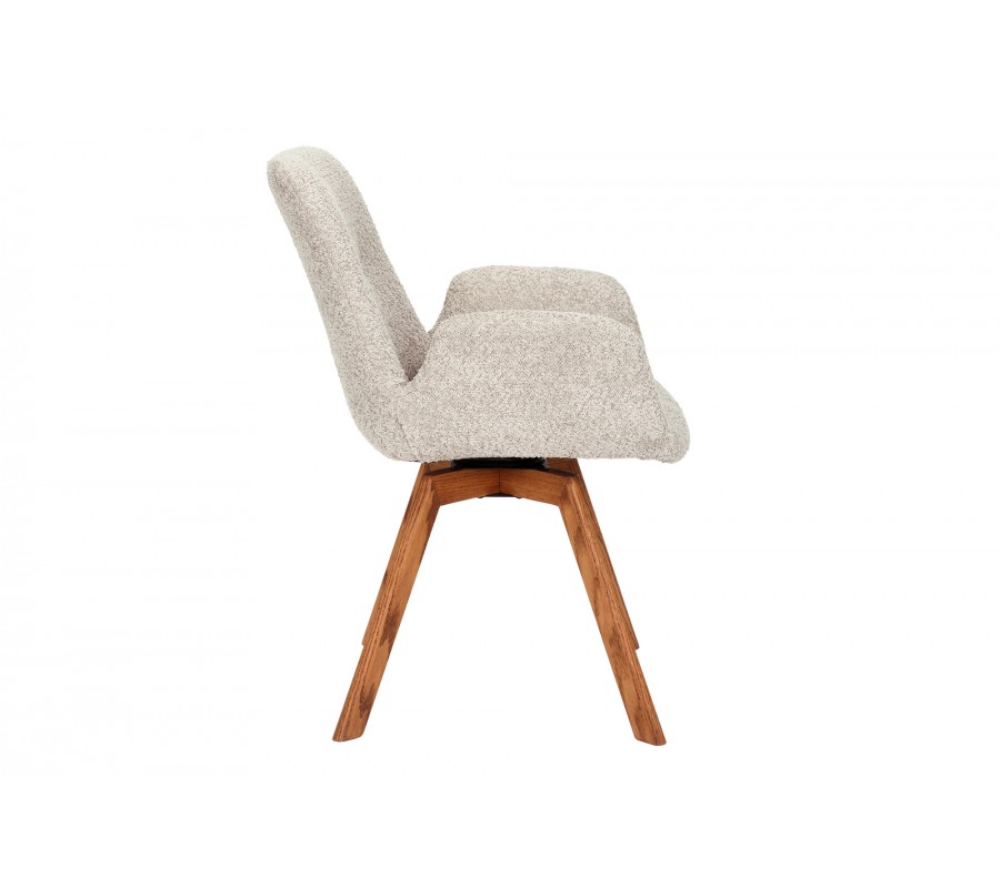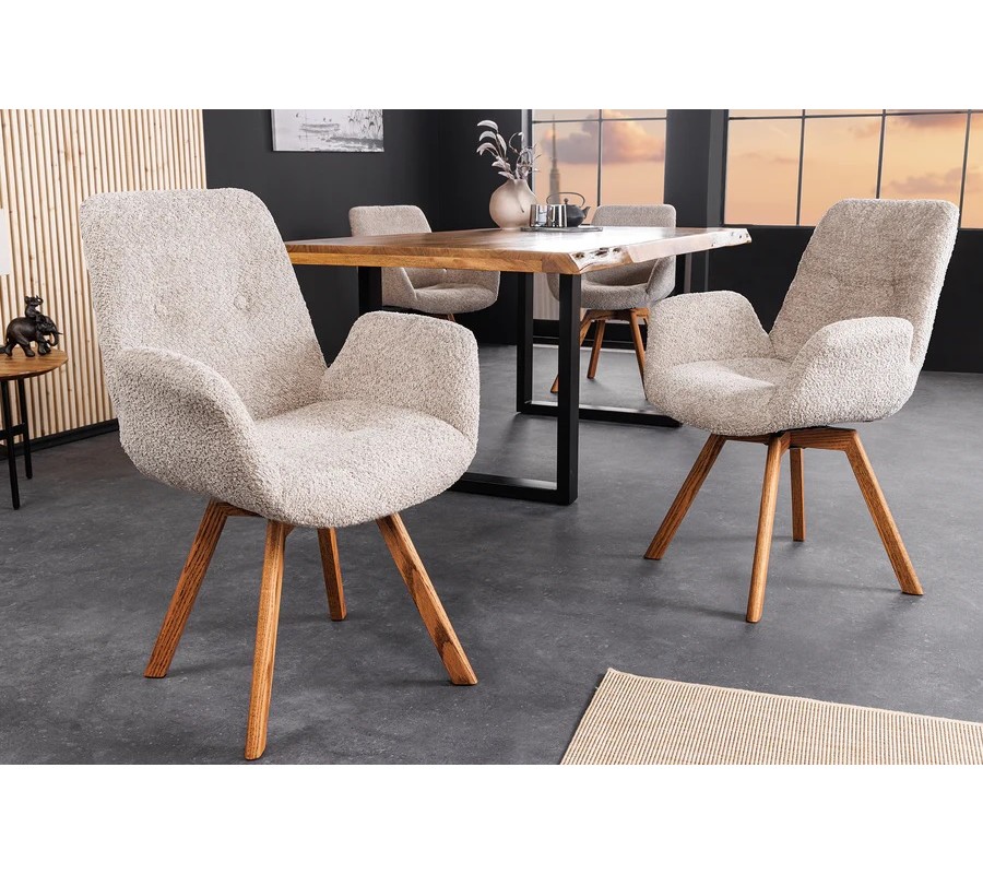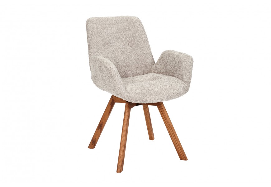 Dizajnová moderná otočná stolička Gothenborg so svetlým béžový buklé čalúnením a s opierkami na ruky 61 cm