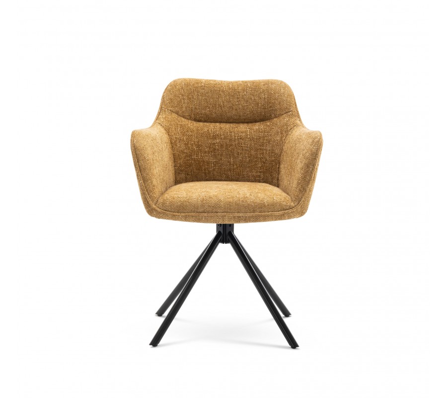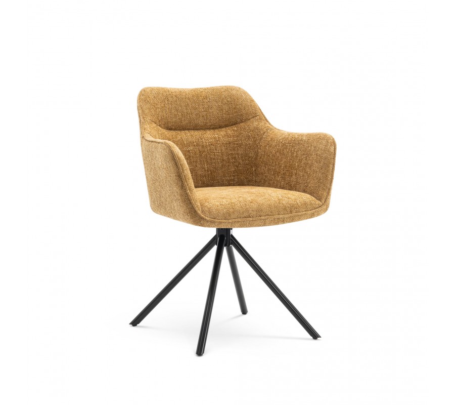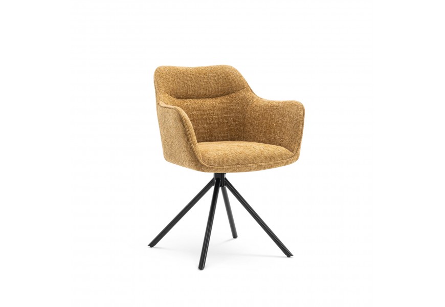Moderne otočné kreslo Kristal Mustard II s horčicovo žlťou poťahovou latkou a čiernymi kovovými nožičkami 80cm