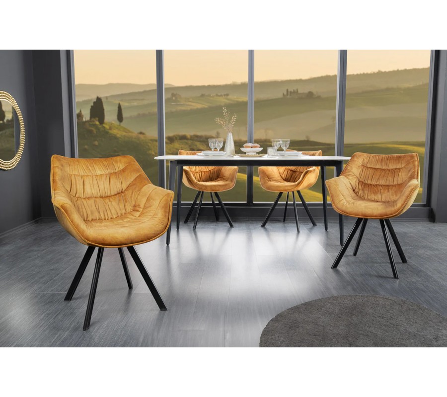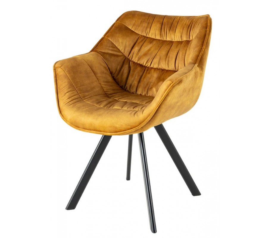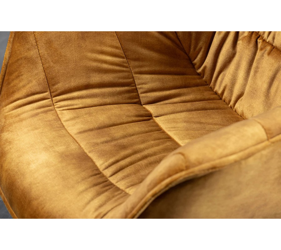Dizajnová stolička Monzana rozžiari vašu jedáleň či pracovňu svojou nádhernou horčicovou žltou farbou. Mohutná čalúnená sedacia časť jej dodáva pohodlnosť kresla a kovové nožičky zabezpečujú výbornú stabilitu.