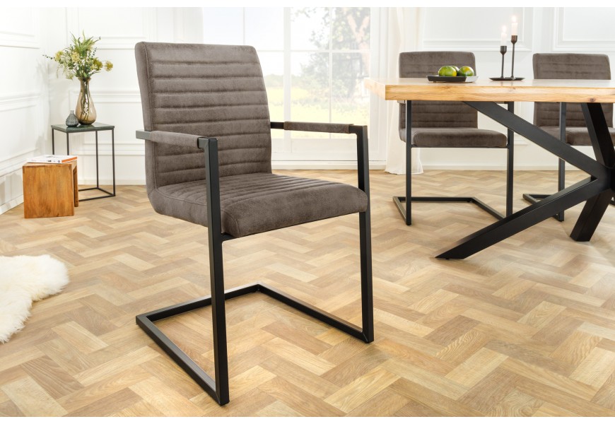 Dizajnová sivo čierna industriálna konzolová jedálenská stolička Imperial s čalúnením s efektom zámerného zostarnutia 91 cm