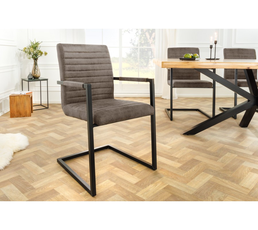 Dizajnová konzolová stolička Imperial dodá vašej jedálni distingvovaný moderný prvok. Kombinácia sivej a čiernej farby pôsobí elegantným dojmom, zatiaľ čo poťah s efektom zámerného zostarnutia prináša do dizajnu zaujímavú štruktúru.