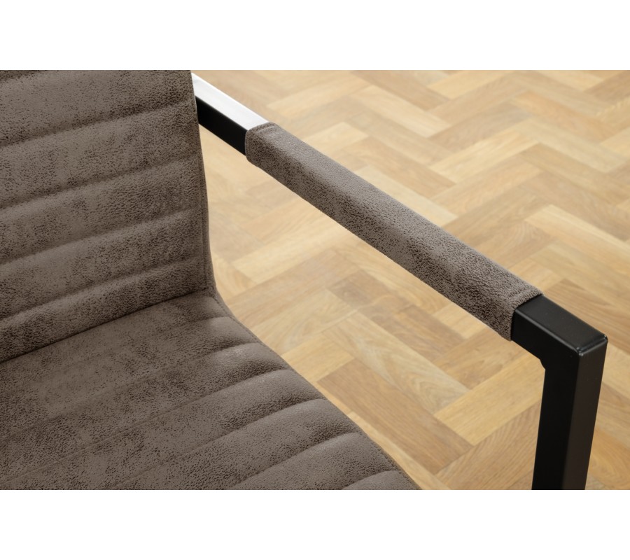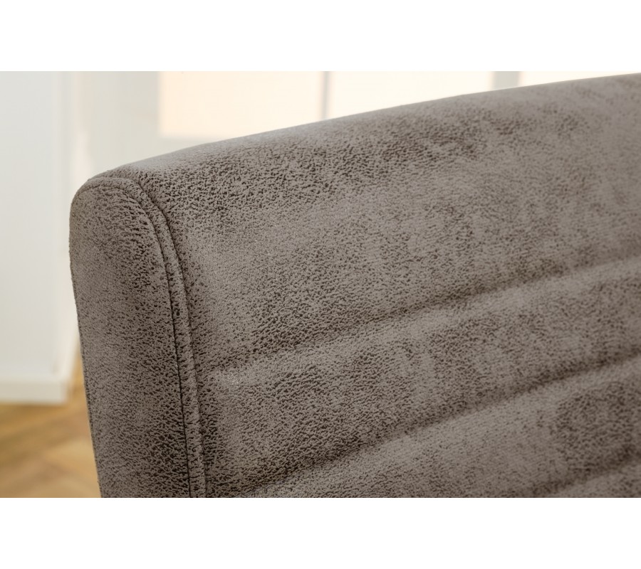 Sedacia časť a opierka na chrbát sú čalúnené, čo zaručuje pohodlné sedenie aj počas dlhšieho času, napríklad pri práci. Zdobí ich lineárne prešívanie. Sivý poťah je vyrobený z mikrovlákna. Tento materiál je odolný a nevyžaduje náročnú údržbu. Jeho povrch je upravený efektom zámerného zostarnutia, čo mu dodáva vzhľad vintage kože.