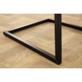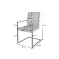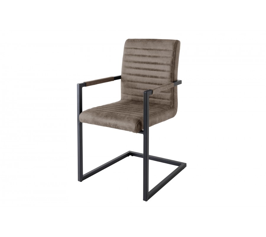 Stolička má modernú konzolovú siluetu, s absenciou zadných nožičiek. Výbornú stabilitu jej zaručuje hranatá kovová podstava, ktorá na prednej strane stúpa smerom nahor a vytvára líniu predných nožičiek, ktorá následne prechádza až do opierok na ruky s čalúneným povrchom, spojených spojnicou na chrbtovej časti. Kovový rám má čiernu farbu a v jeho tvare dominujú striktné rovné línie a výrazné uhly.