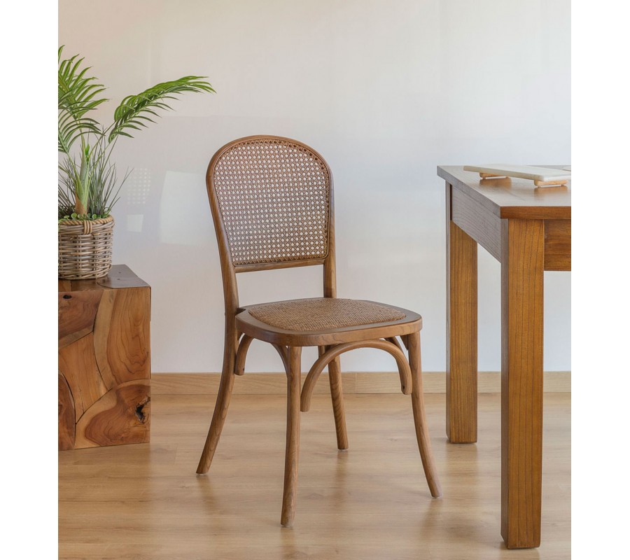Jedálenská stolička Davao vás očarí kombináciou masívneho dreveného rámu vo vidieckom štýle a pôvabného exotického ratanového výpletu. Pôsobí teplým dojmom a do vašej jedálne prinesie útulnú atmosféru.