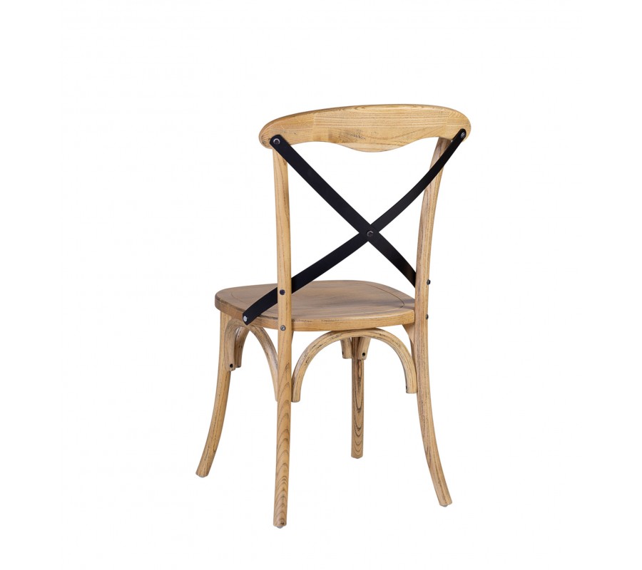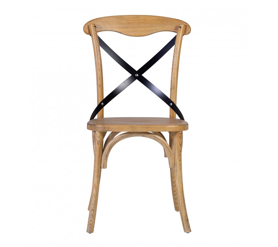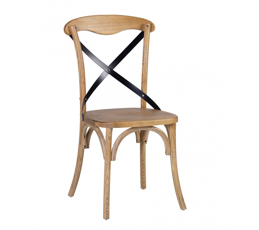 Masívna vidiecka jedálenská stolička Chicago Cruz Tonet v svetlej hnedej farbe s čiernou krížovou opierkou 92 cm