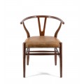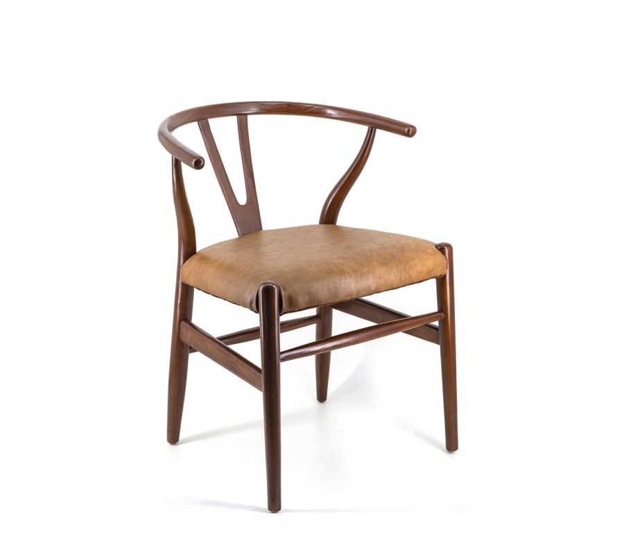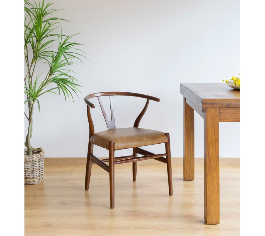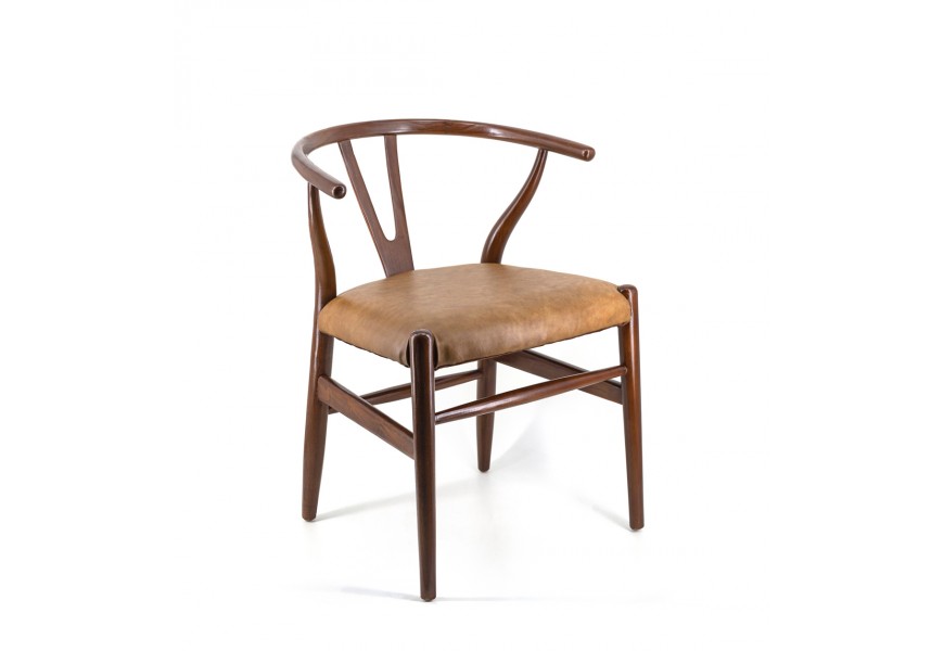Luxusná kožená stolička Gaffelboen s rámom z teakového dreva a čalúneným sedadlom z pravej kože v ťavej hnedej farbe 73 cm