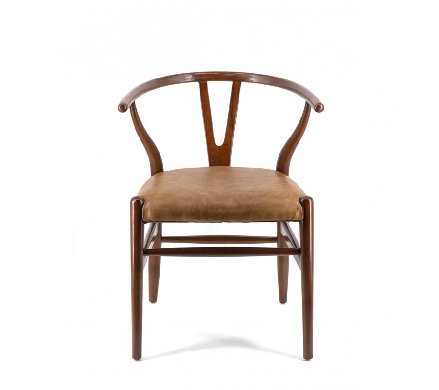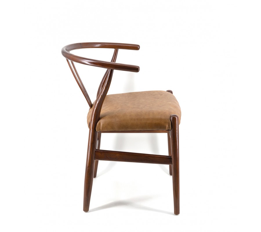 Rám stoličky je vyrobený z teakového dreva a má teplú tmavú hnedú farbu. Nožičky sú rovné a majú valcovitý tvar. Na bočnej strane sa nachádza plochá zošikmená spojnica. Zadné nožičky plynule prechádzajú v elegantnom zakrivení smerom hore a pripájajú sa k polkruhovej chrbtovej opierke. V strede opierky sa tiež nachádza drevený prvok v tvare V, ktorý zaručuje jej výbornú stabilitu.