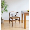 Jedálenská stolička Gaffelboen spája exotické masívne drevo a pravú kožu v luxusnom modernom dizajne. Do vašej jedálne vnesie vizuálne zaujímavý prvok a zaoblená opierka vám zaručí pohodlné sedenie.