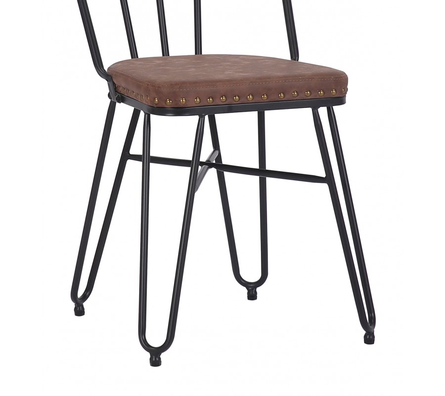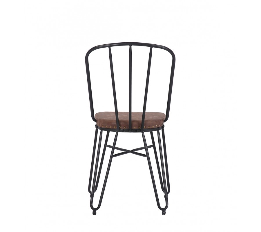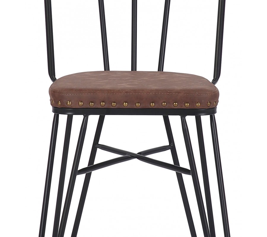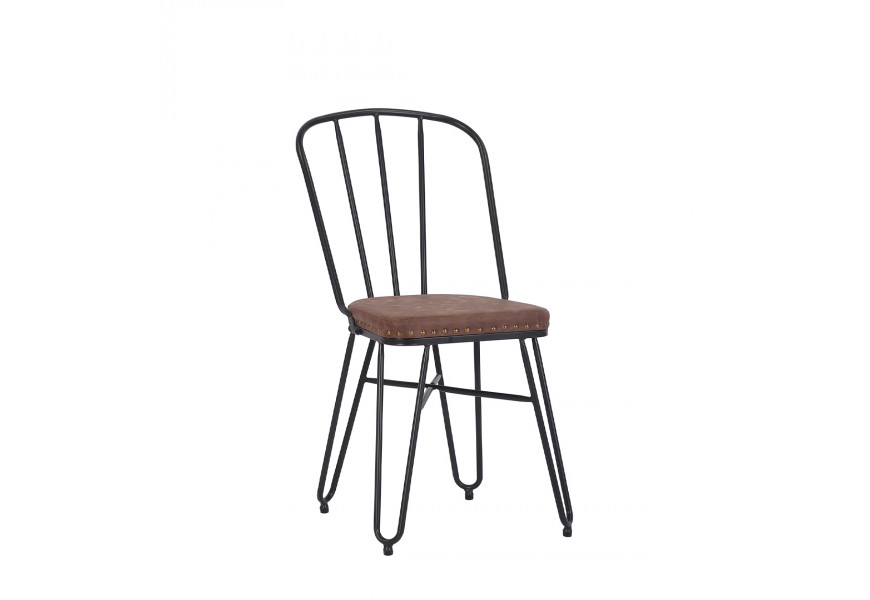 Moderná industriálna jedálenská stolička Lawrence s ohýbanou čiernou kovovou konštrukciou a koženým sedadlom 86 cm