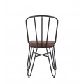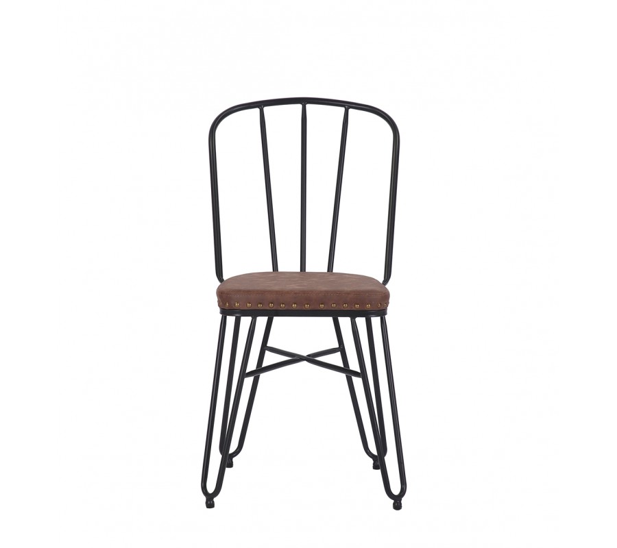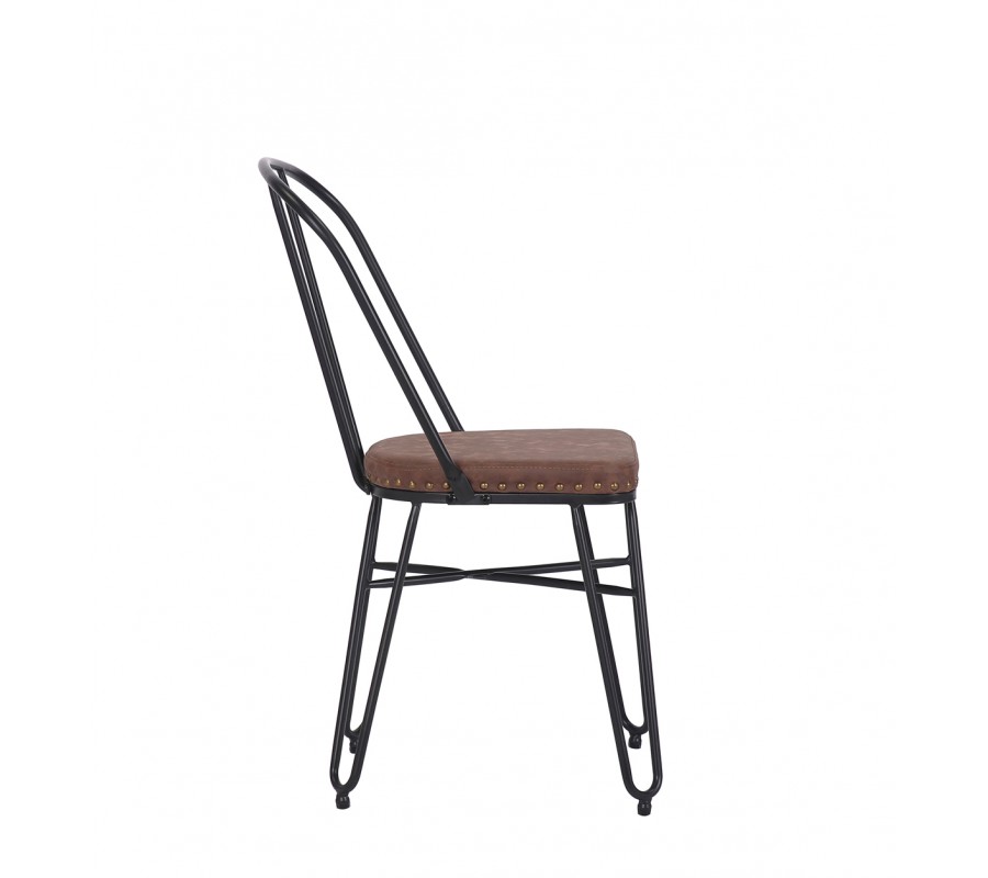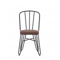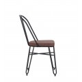 Konštrukciu rámu je zhotovená z kovu v čiernej farbe a tvoria ju tenké, ohýbané valcovité línie. Štyri nožičky majú predĺžený tvar U. Prepája ich krížová spojnica, ktorá zaručuje výbornú stabilitu nábytku a maximálnu nosnosť stoličky 150 kg. Chrbtová opierka má zaoblenú vrchnú časť a bočné strany mierne presahujú do bokov. Vypĺňa ju trojica vertikálnych línií.