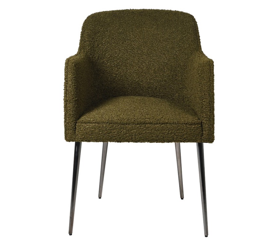 Stolička Ola Verde sa hodí do moderne zariadenej jedálne, ktorú chcete osviežiť zaujímavou štruktúrou. Nožičky sa výborne prepoja so stolom s minimalistickou chrómovou podstavou. Olivovú farbu poťahu môžete skombinovať aj s masívnym dreveným nábytkom a naturálnymi zemitými tónmi.