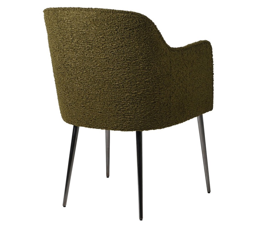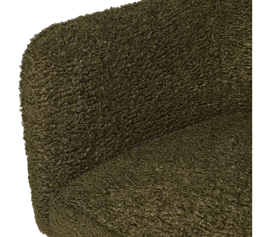 Luxusná moderná čalúnená jedálenská stolička Ola Verde s poťahom s dizajnom ovčej kožušiny v olivovej zelenej farbe 57 cm