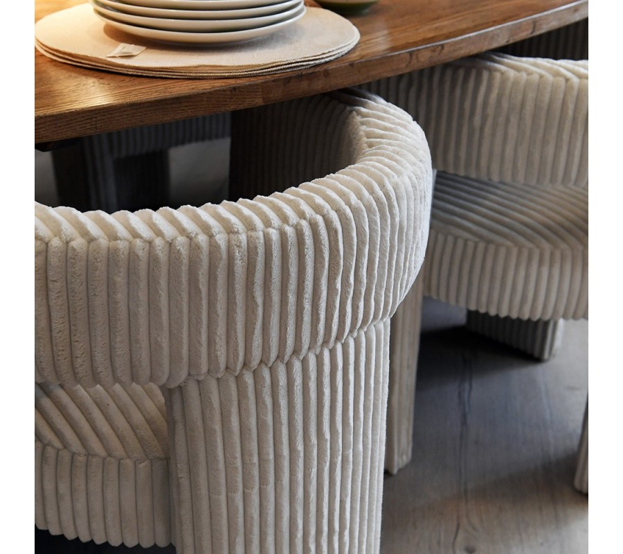 Luxusná moderná čalúnená jedálenská stolička Elvis s poťahom v krémovej bielej farbe s výraznou menčestrovou štruktúrou 72 cm