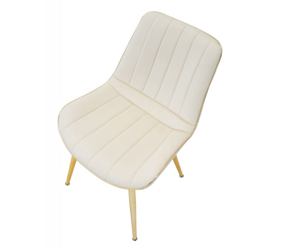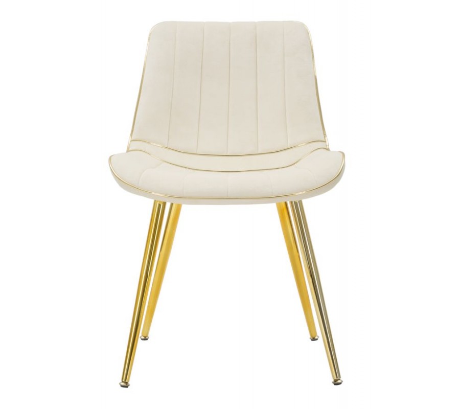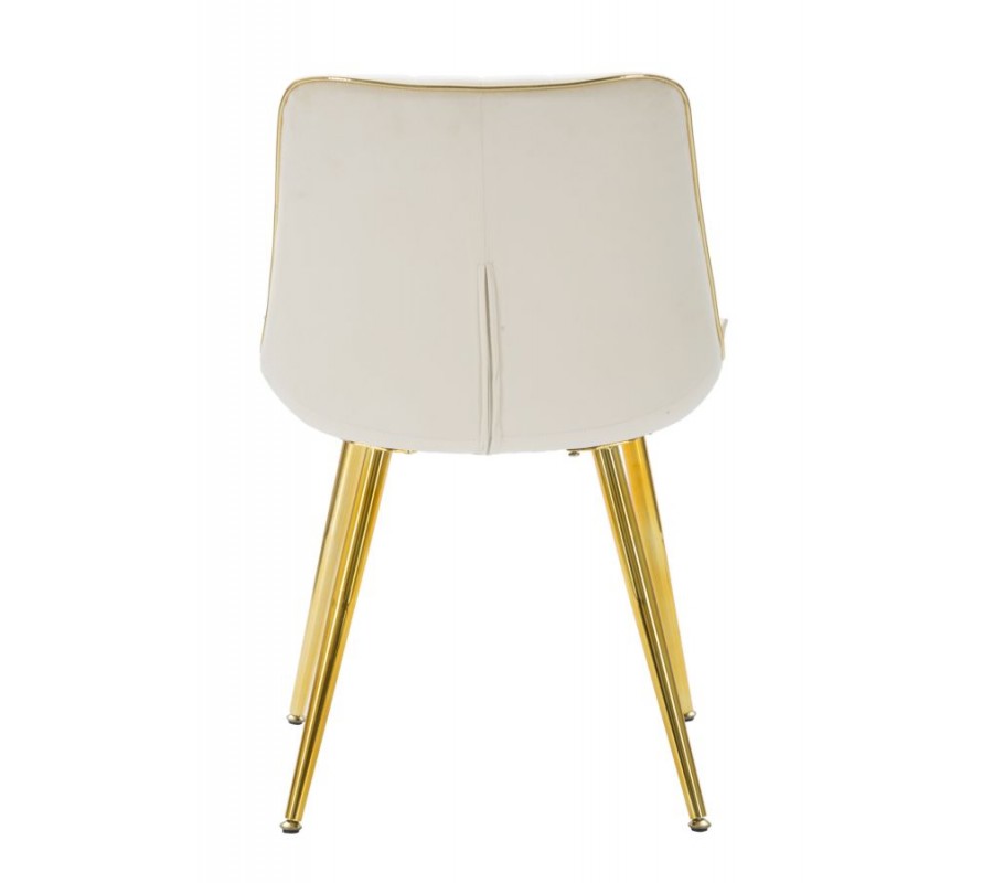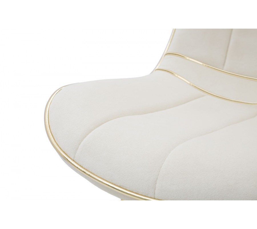 Art deco čalúnená prešívaná krémová jedálenská stolička Asen so zamatovým poťahom so zlatými kovovými nožičkami 79 cm