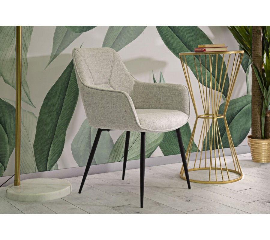 Moderná škandinávska jedálenská stolička Eli ponúka nadčasový dizajn spojený s maximálnym komfortom Vyznačuje sa zaobleným operadlom s integrovanými opierkami na ruky, ktoré poskytujú stabilnú oporu a pohodlie pri sedení Geometrické prešívanie na operadle podčiarkuje jej moderný vzhľad a dodáva jej jedinečný charakter