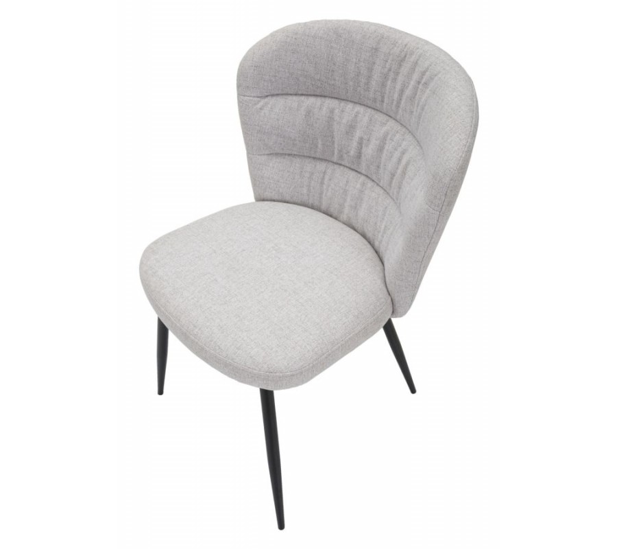 Sedacia časť a operadlo sú čalúnené textilným poťahom v svetlosivej farbe, ktorý je mäkký, odolný a príjemný na dotyk. Penové čalúnenie v sedacej časti zaručuje vysoký komfort a prispôsobivosť tvaru tela, čím sa stolička hodí aj na dlhšie sedenie.