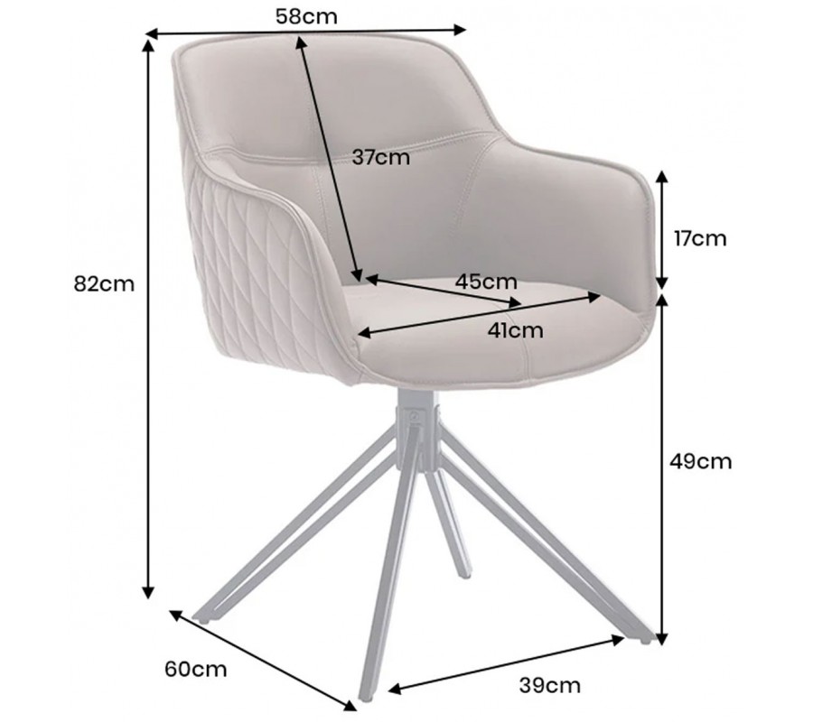 Otočný mechanizmus zvyšuje praktickosť stoličky, umožňuje jednoduché otáčanie a zlepšuje flexibilitu pri stole. Stabilná kovová podstava v čiernom prevedení sa skladá zo štyroch elegantne rozložených nožičiek, ktoré dodávajú dizajnu dynamiku a zabezpečujú pevnosť konštrukcie.