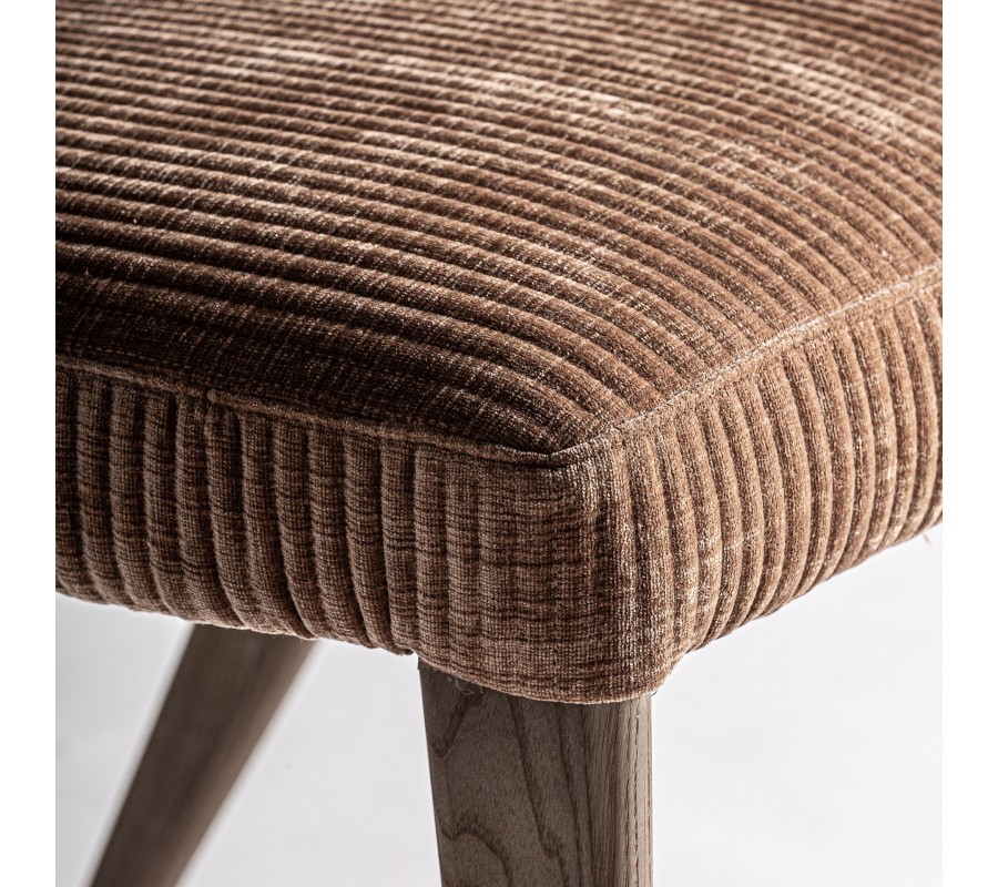 Luxusná retro jedálenská stolička Leni s hnedým menčestrovým poťahom a dubovo kaučukovou konštrukciou 82 cm
