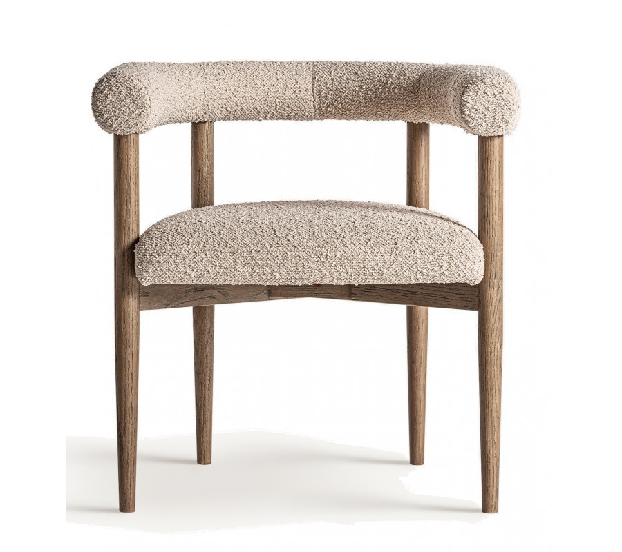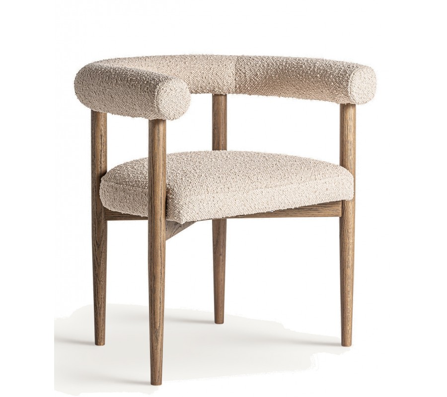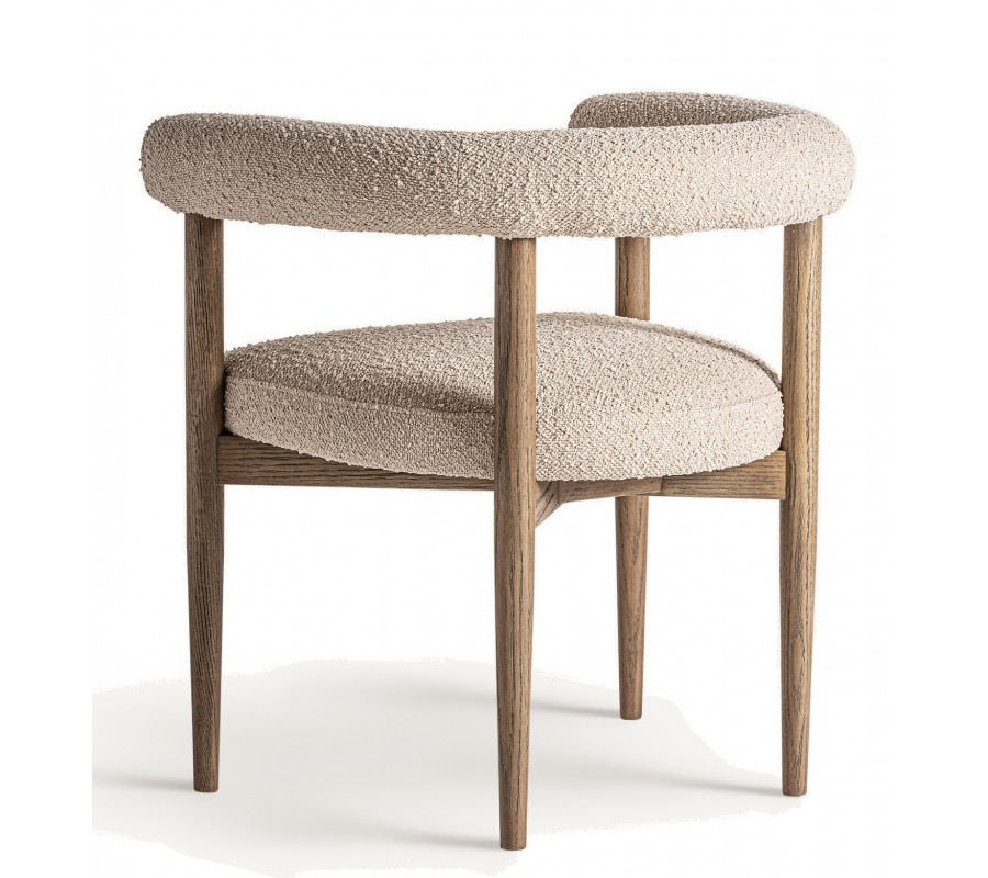 Jedálenská stolička Elara spája luxusné prírodné materiály s moderným dizajnom, čím vytvára nadčasový kúsok. Zaoblená konštrukcia a mäkké línie jej dodávajú sofistikovaný vzhľad, zatiaľ čo kvalitné remeselné spracovanie podčiarkujú jej exkluzívny charakter.