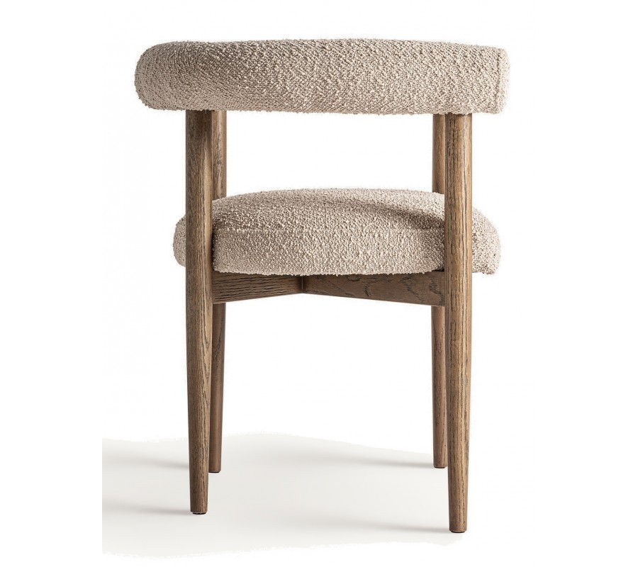 Luxusná moderná béžová jedálenská stolička Elara z hnedého jaseňového dreva zaobleného tvaru s buklé čalúnením 69 cm