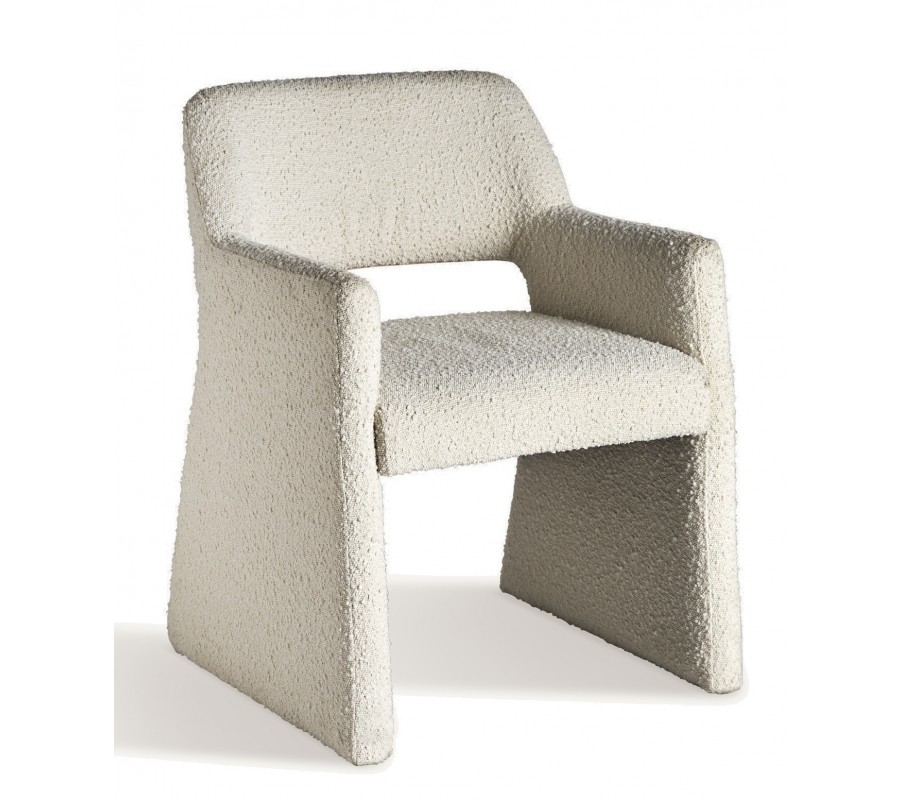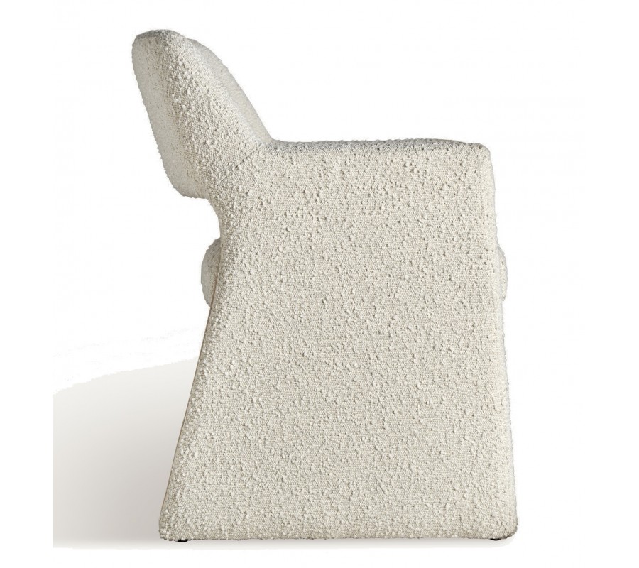 Luxusná bouclé jedálenská stolička Solero s celoplošným poťahom v bielej farbe s opierkami na ruky 79 cm