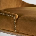 Luxusná vintage okrová jedálenská stolička Jiren so zamatovým poťahom a kovovými nitmi s atypicky vykrojeným operadlom 84 cm