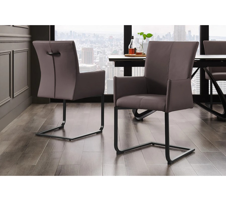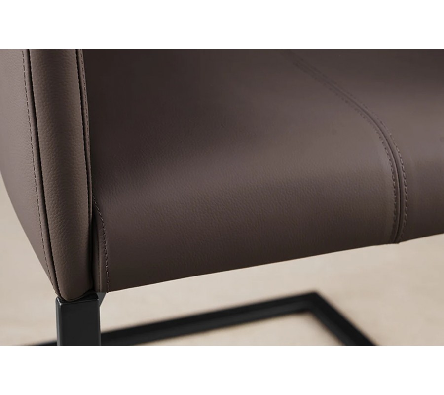Zaujímavým konštrukčným prvkom je konzolová noha z kovu v čiernej farbe s matným povrchom, ktorá stoličke dodáva priemyselný nádych a zároveň zabezpečuje pevnú stabilitu. Na zadnej strane operadla sa nachádza praktická kovová rukoväť, ktorá umožňuje pohodlné uchopenie a jednoduché premiestňovanie stoličky.