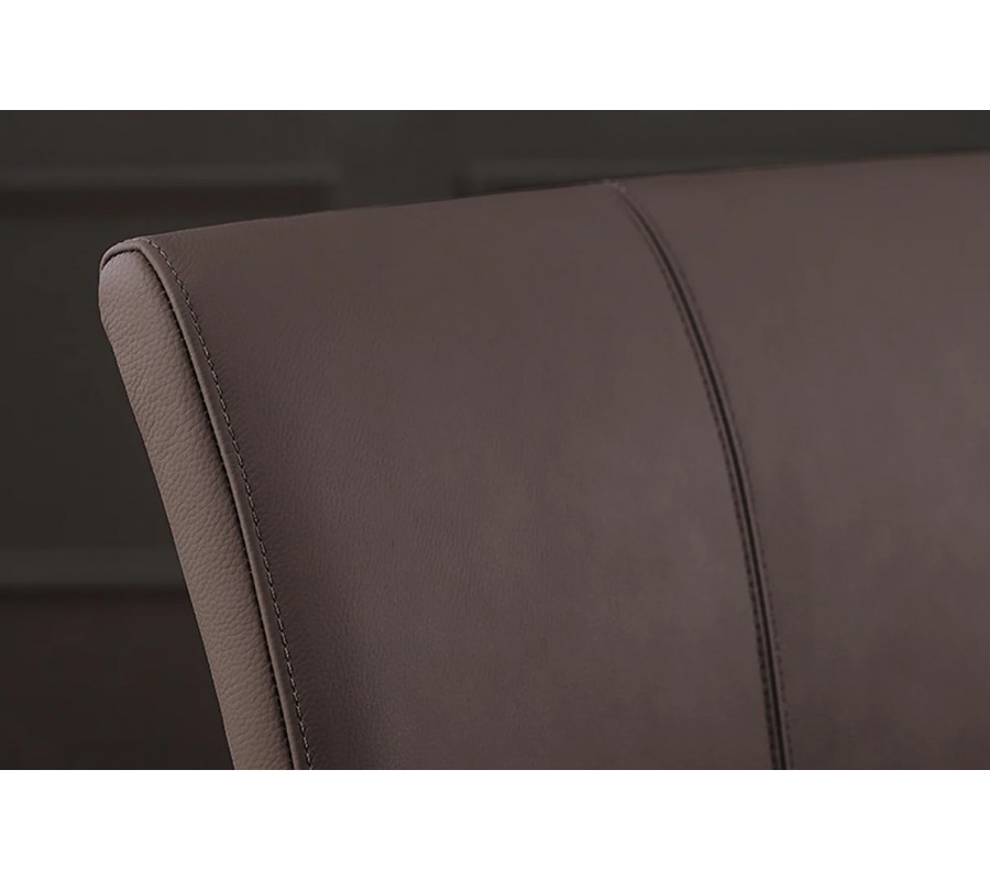 Dizajnová industriálna konzolová stolička Samson v sebe spája funkčnosť, moderný štýl a komfort. Jej čalúnené sedadlo a operadlo sú potiahnuté kvalitnou hnedou eko kožou, ktorá pôsobí elegantne a zároveň prakticky. Eko koža je obľúbenou voľbou pre svoju odolnosť voči oteru, jednoduchú údržbu, dostupnosť a ekologickejší výrobný proces v porovnaní s pravou kožou. Jemné dekoratívne prešívanie v štvorcovom vzore dodáva stoličke vizuálnu štruktúru a podčiarkuje mäkkosť a tvarovo stabilnú výplň čalúnenia.