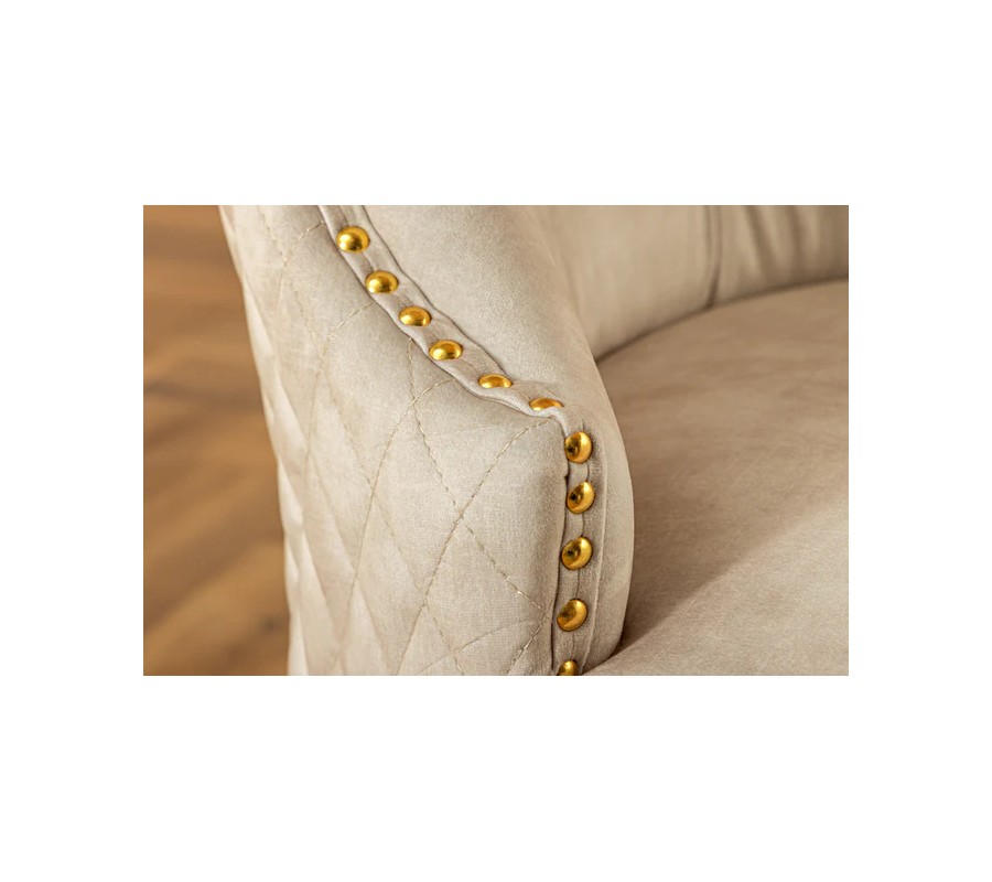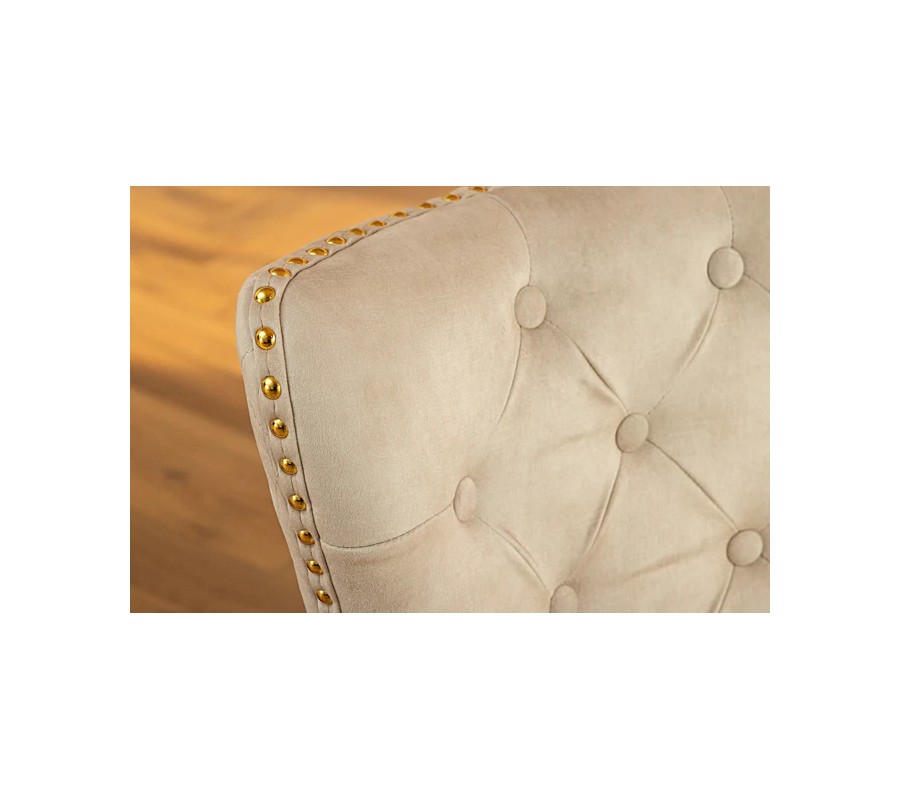 Glamour čalúnená prešívaná béžová jedálenská stolička Modern Barock so zlatými kovovými nožičkami a klopkadlom 98 cm