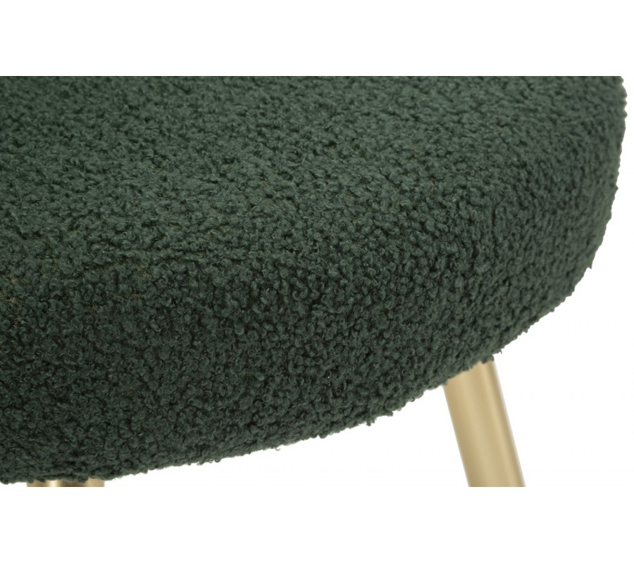 Moderná dizajnová čalúnená tmavo zelená jedálenská stolička Janar s bouclé poťahom a kovovými zlatými nožičkami 67 cm