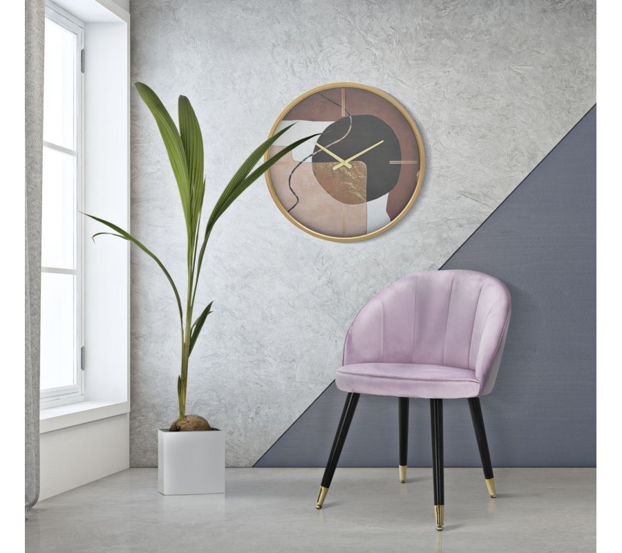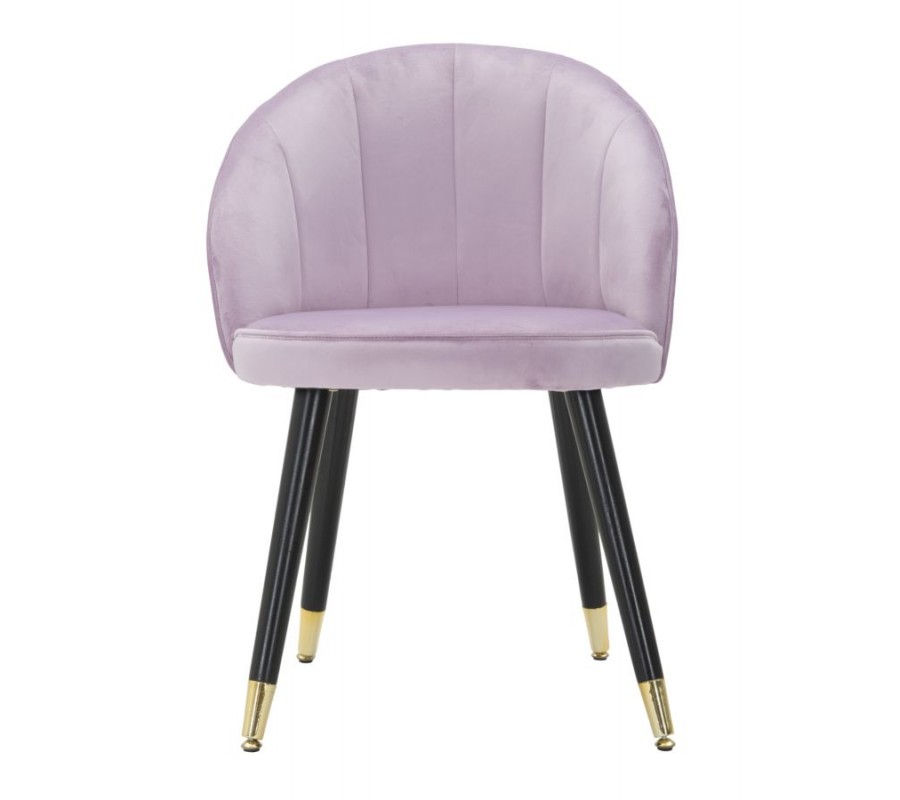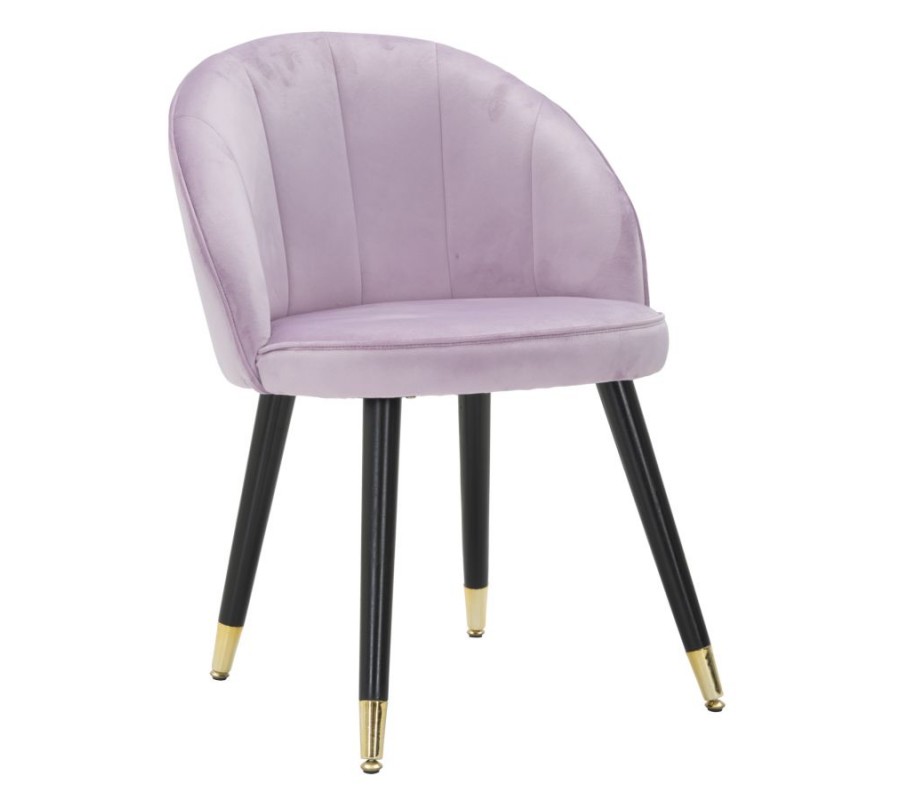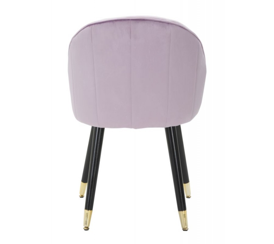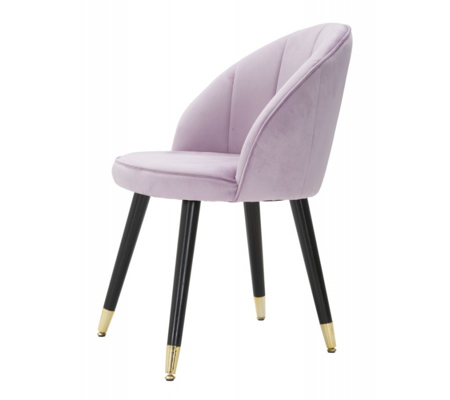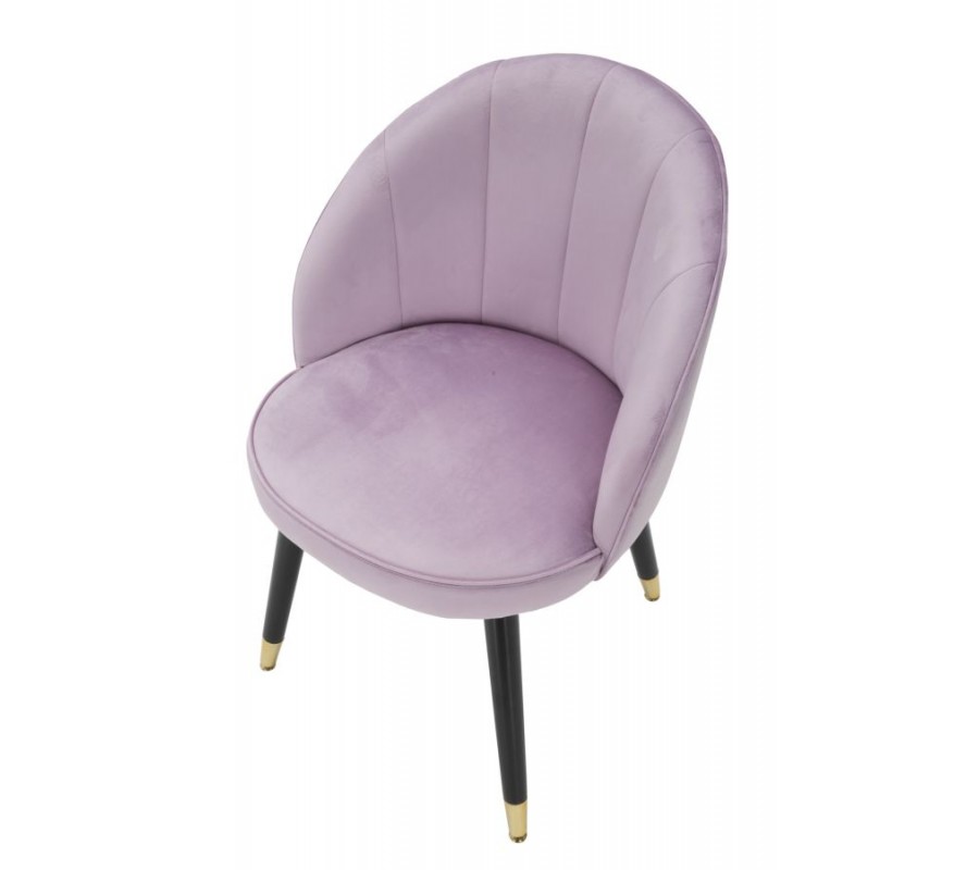 Štýlová art deco fialová zamatová jedálenská stolička Elveria s čiernymi nožičkami a zlatým detailom 80 cm