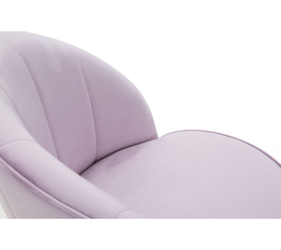 Jedálenská stolička Elveria vyniká okrúhlym tvarom sedadla a zaobleným operadlom, ktoré plynulo obopína chrbát a poskytuje pohodlnú oporu pri sedení. Poťah z jemného fialového zamatu pôsobí luxusne a príjemne na dotyk, zatiaľ čo zvislé prešívanie na operadle pridáva stoličke eleganciu a vizuálnu dynamiku.